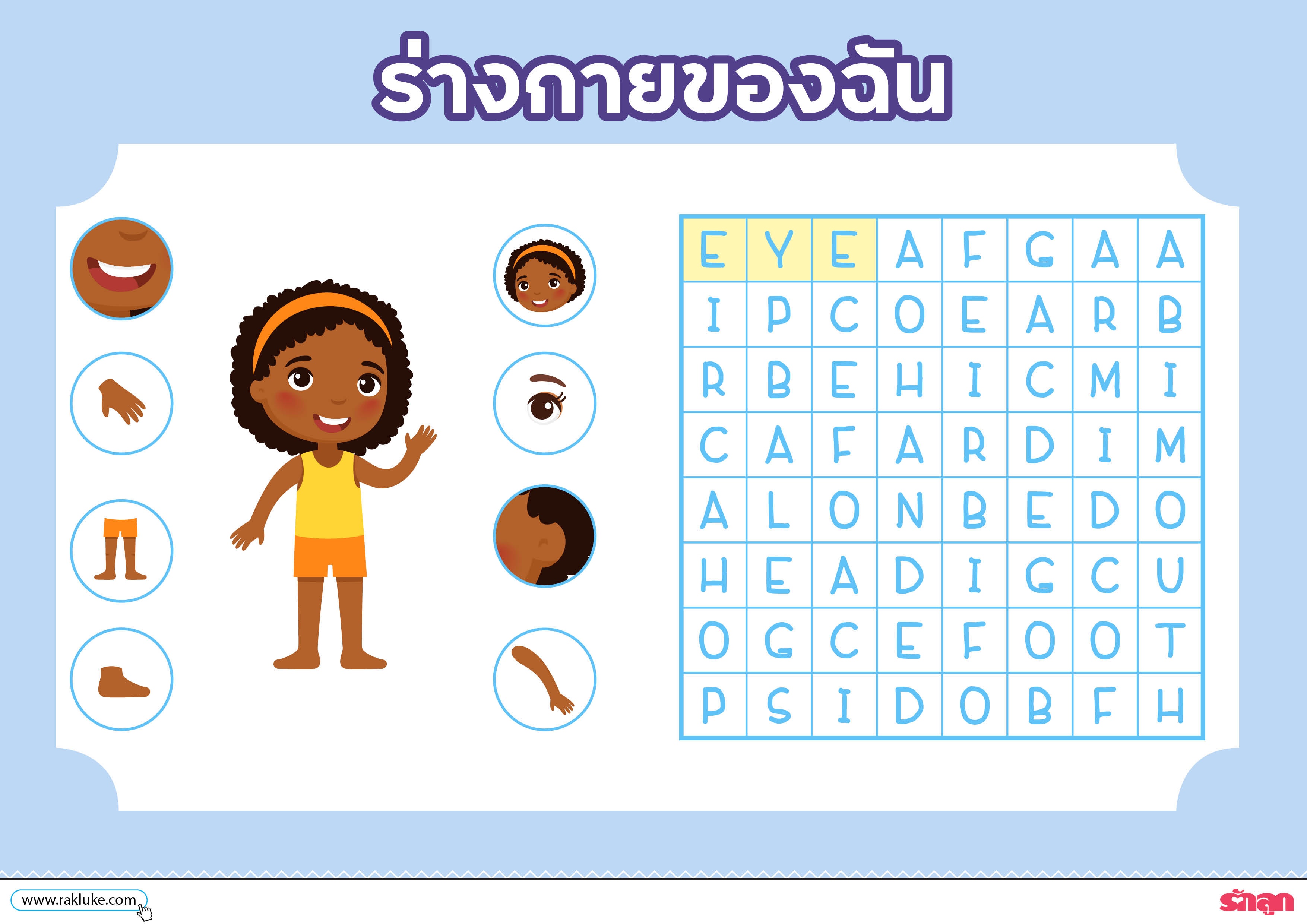 เกมฝึกการสังเกต ไปพร้อมๆ กับ พัฒนาศัพท์ภาษาอังกฤษ ที่เกี่ยวข้องกับอวัยวะของร่างกายกับ ฟรี ดาวน์โหลด word puzzle ร่างกายของฉัน
