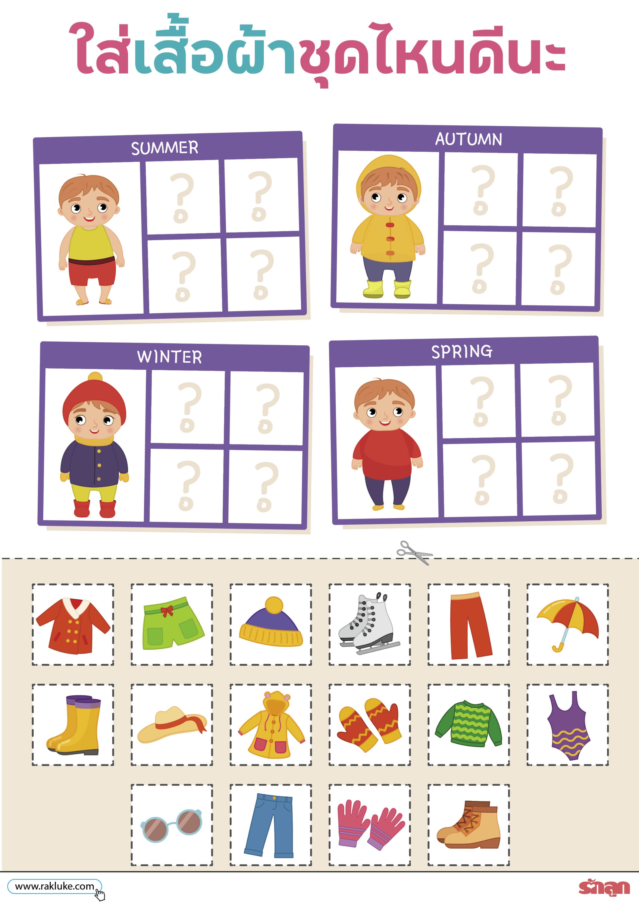 Card game ที่ช่วยให้เด็ก เรียนรู้เกี่ยวกับสภาพอากาศที่แตกต่างกันในฤดูต่างๆ และการเลือกเสื้อผ้าที่เหมาะสม