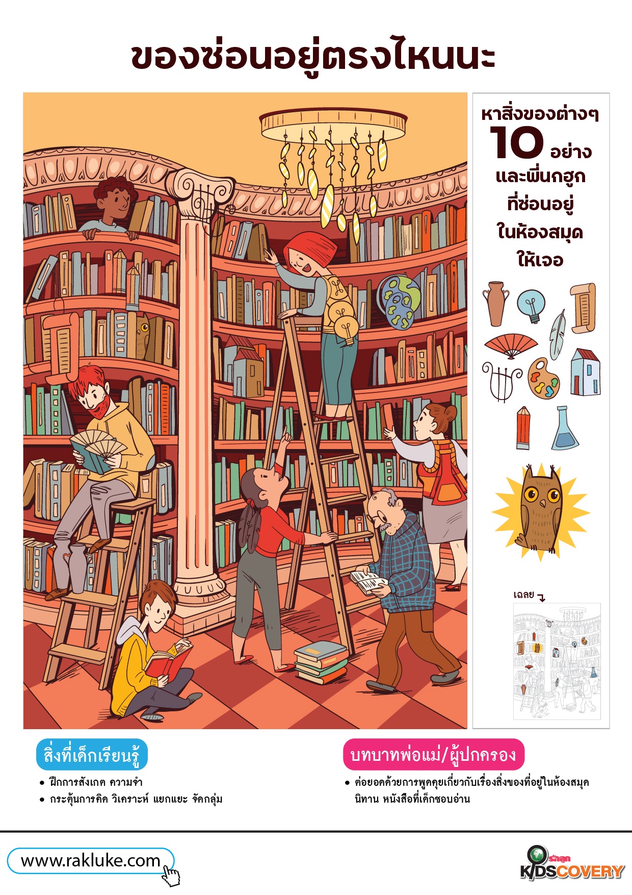 - หาสิ่งของ 10 อย่างและนกฮูกที่อยู่ในภาพให้ครบ