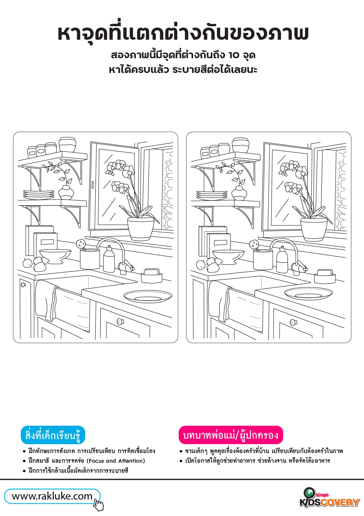 ในครัวนี้มีจุดไหนที่ต่างกันบ้างนะ - ดาวน์โหลด Learning Sheet