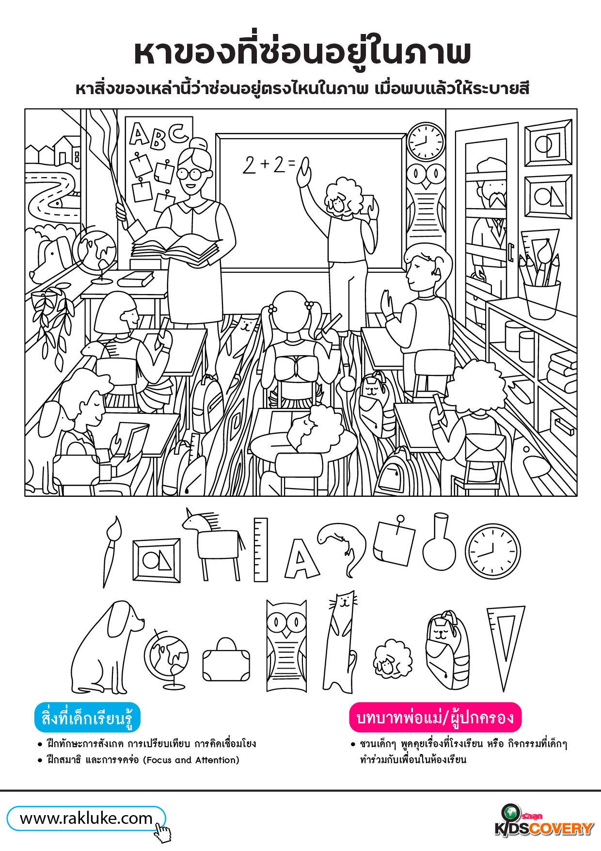 หาของที่ซ่อนอยู่ในภาพห้องเรียนกันเถอะ - ดาวน์โหลด Learning Sheet