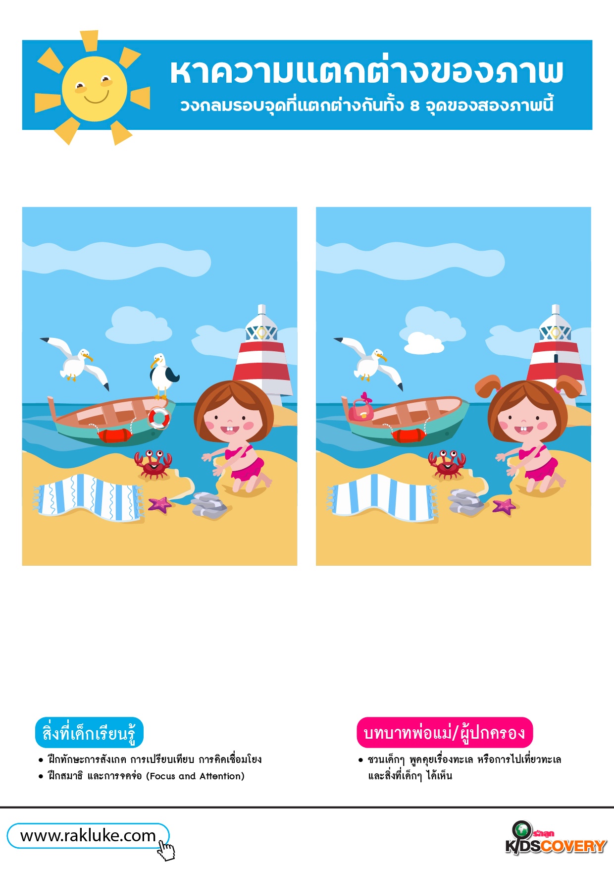 หาความแตกต่างของภาพเที่ยวทะเลกันเถอะ - ดาวน์โหลด Learning Sheet