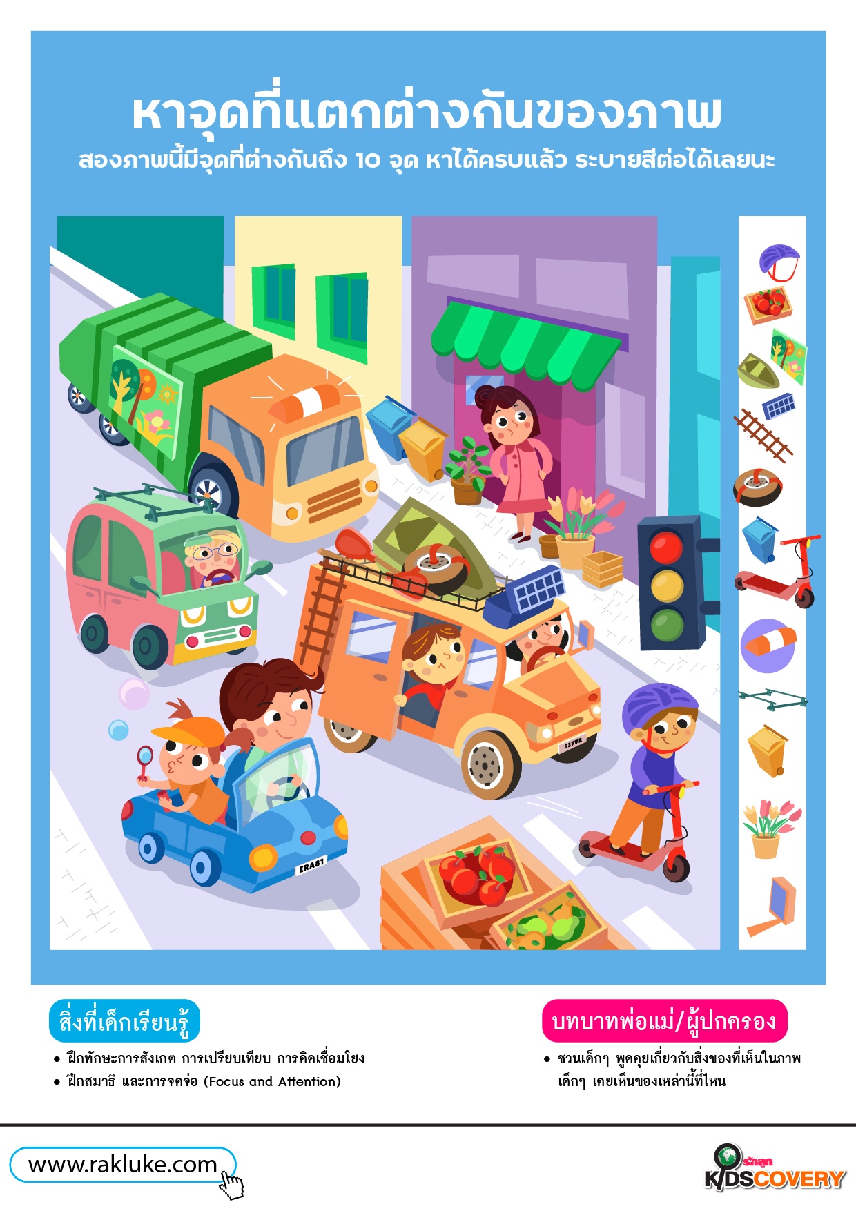 หาสิ่งของในภาพที่เต็มไปทั่วถนนกันเถอะ - ดาวน์โหลด Learning Sheet