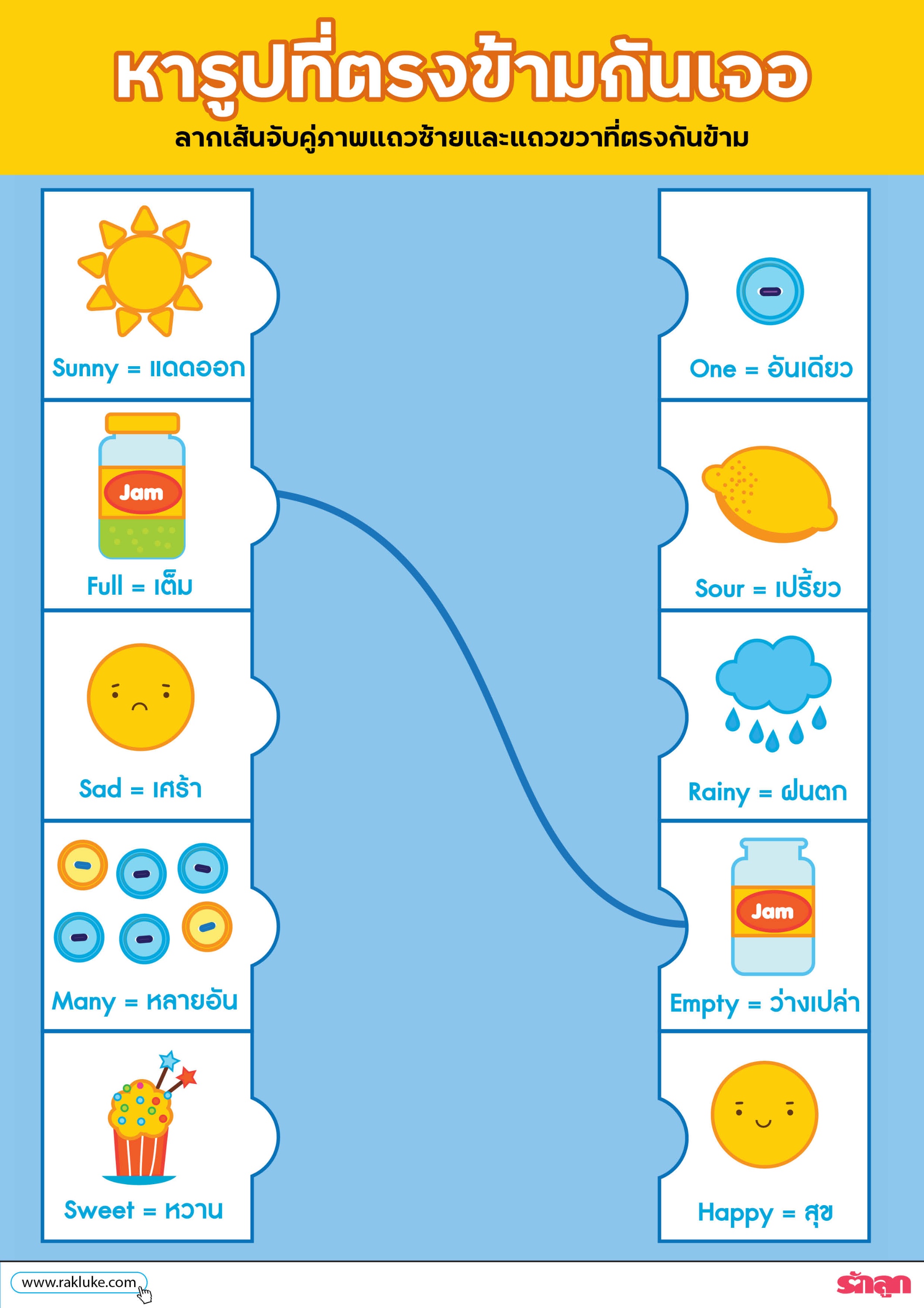 - ลากเส้นจับคู่ภาพแถวซ้ายและแถวขวาที่ตรงกันข้าม