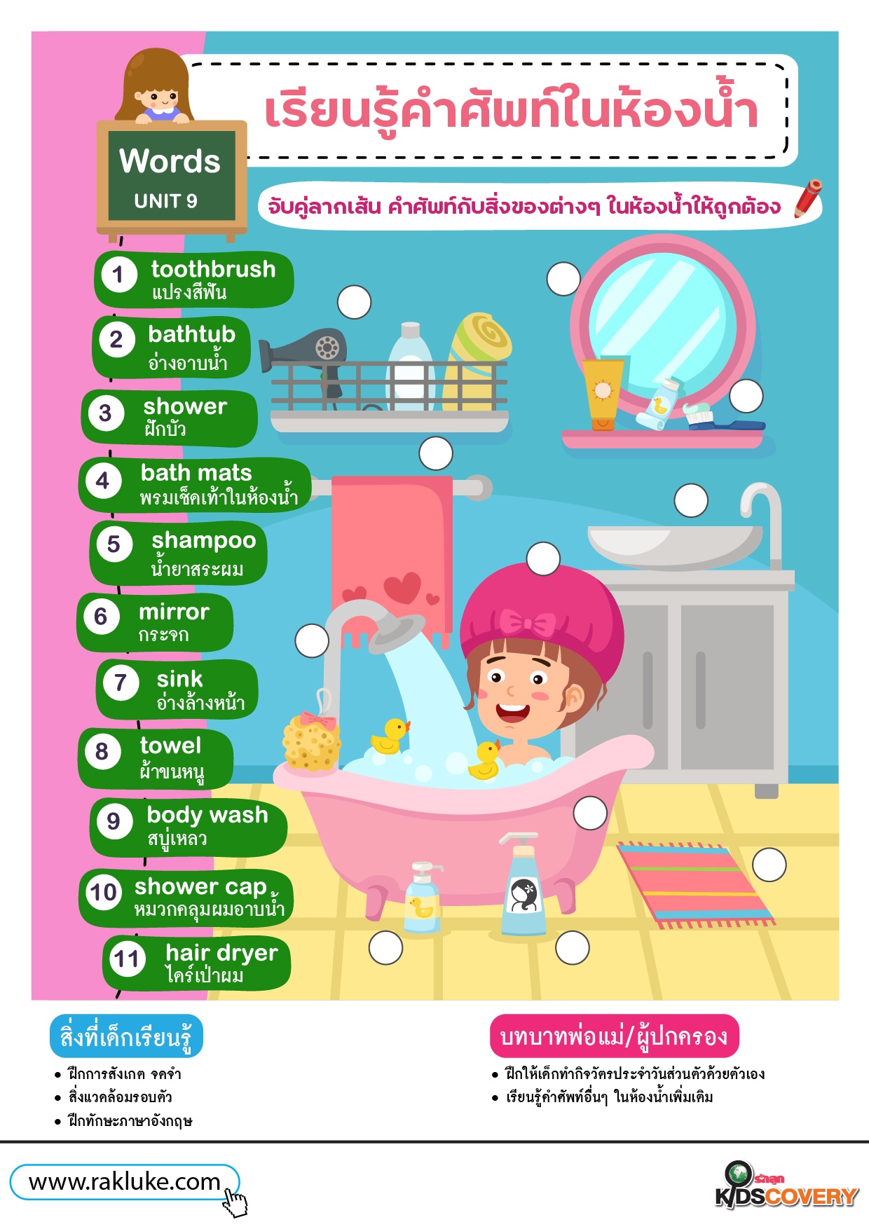 - เรียนรู้คำศัพท์อื่นๆ ในห้องน้ำเพิ่มเติม