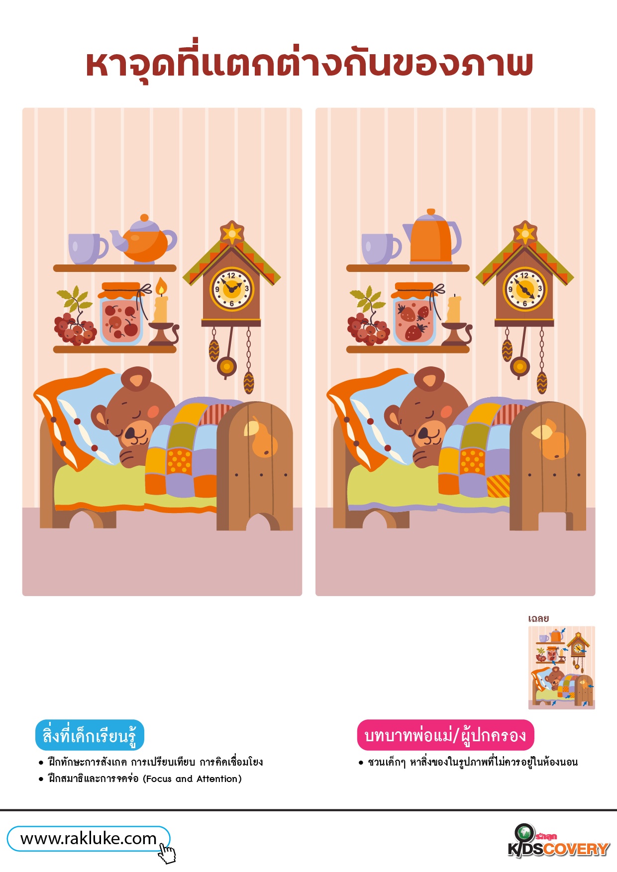 หาความต่างในห้องนอนเจ้าหมีน้อย - ดาวน์โหลด Learning Sheet