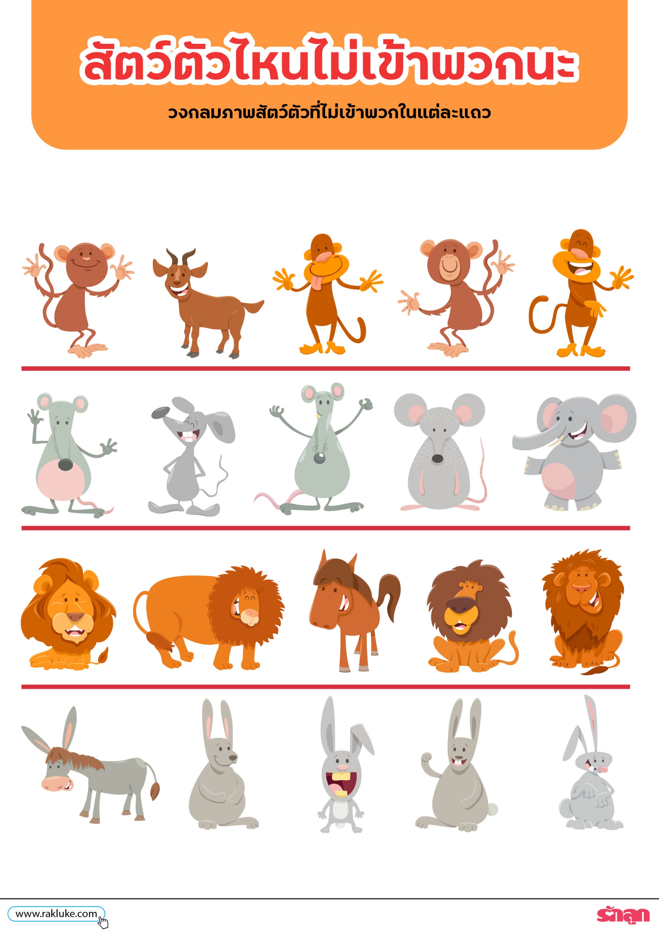 ดาวน์โหลด Learning Sheet : สัตว์ตัวไหนไม่เข้าพวกกันนะ