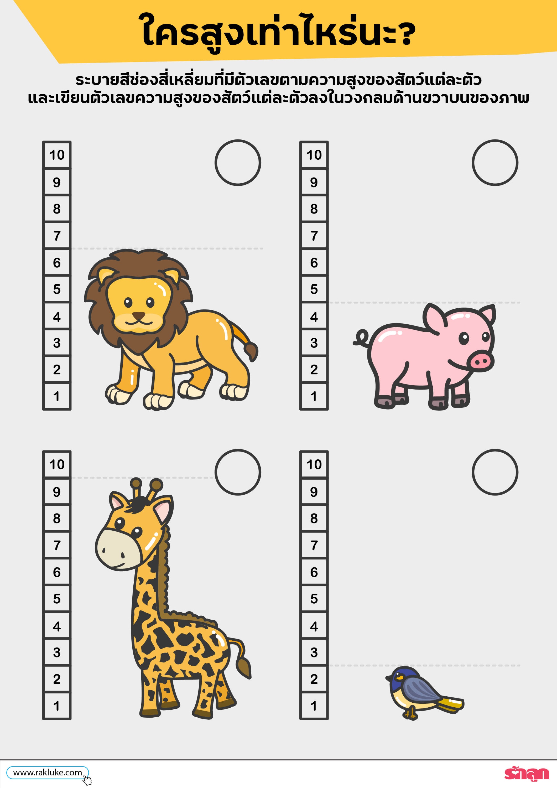 ดาวน์โหลด Learning Sheet : ใครสูงเท่าไหร่นะ