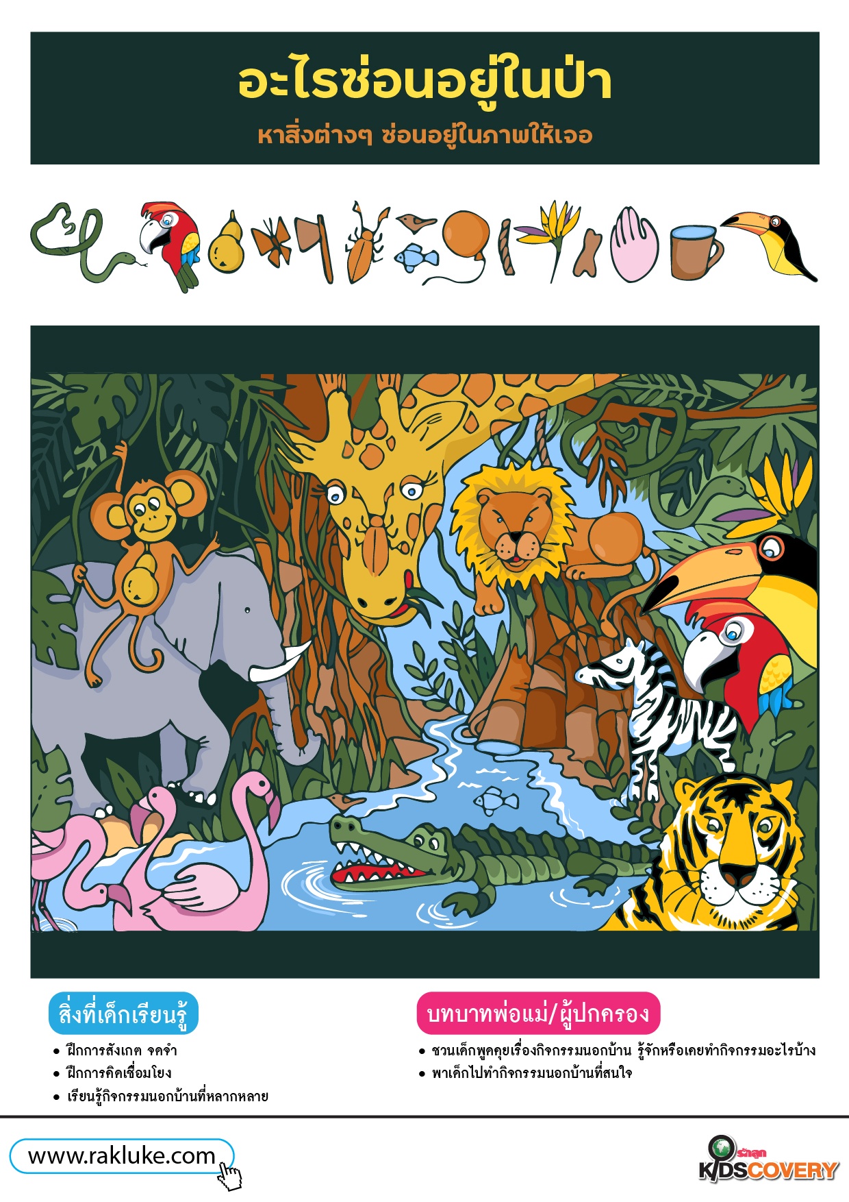 อะไรซ่อนอยู่ในป่า - ดาวน์โหลดฟรี Learning Sheet