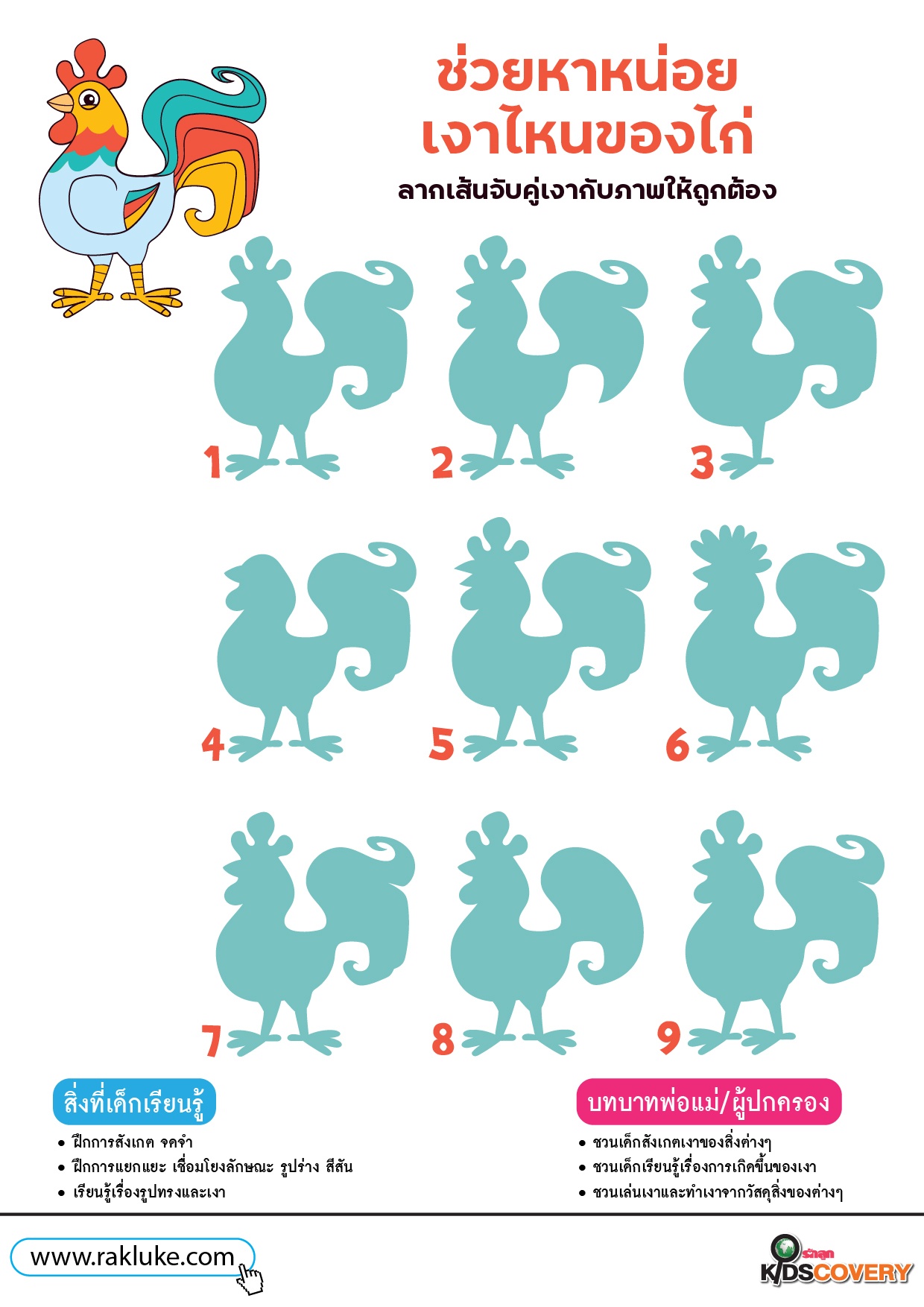 เกมจับคู่ ช่วยหาหน่อยเงาไหนของไก่ - ดาวน์โหลดฟรี Learning Sheet