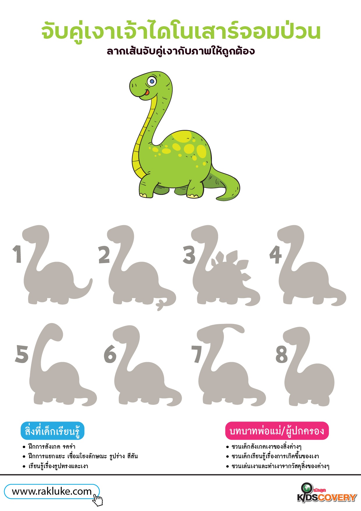 เกมจับคู่ จับคู่เงาเจ้าไดโนเสาร์จอมป่วน - ดาวน์โหลดฟรี Learning Sheet