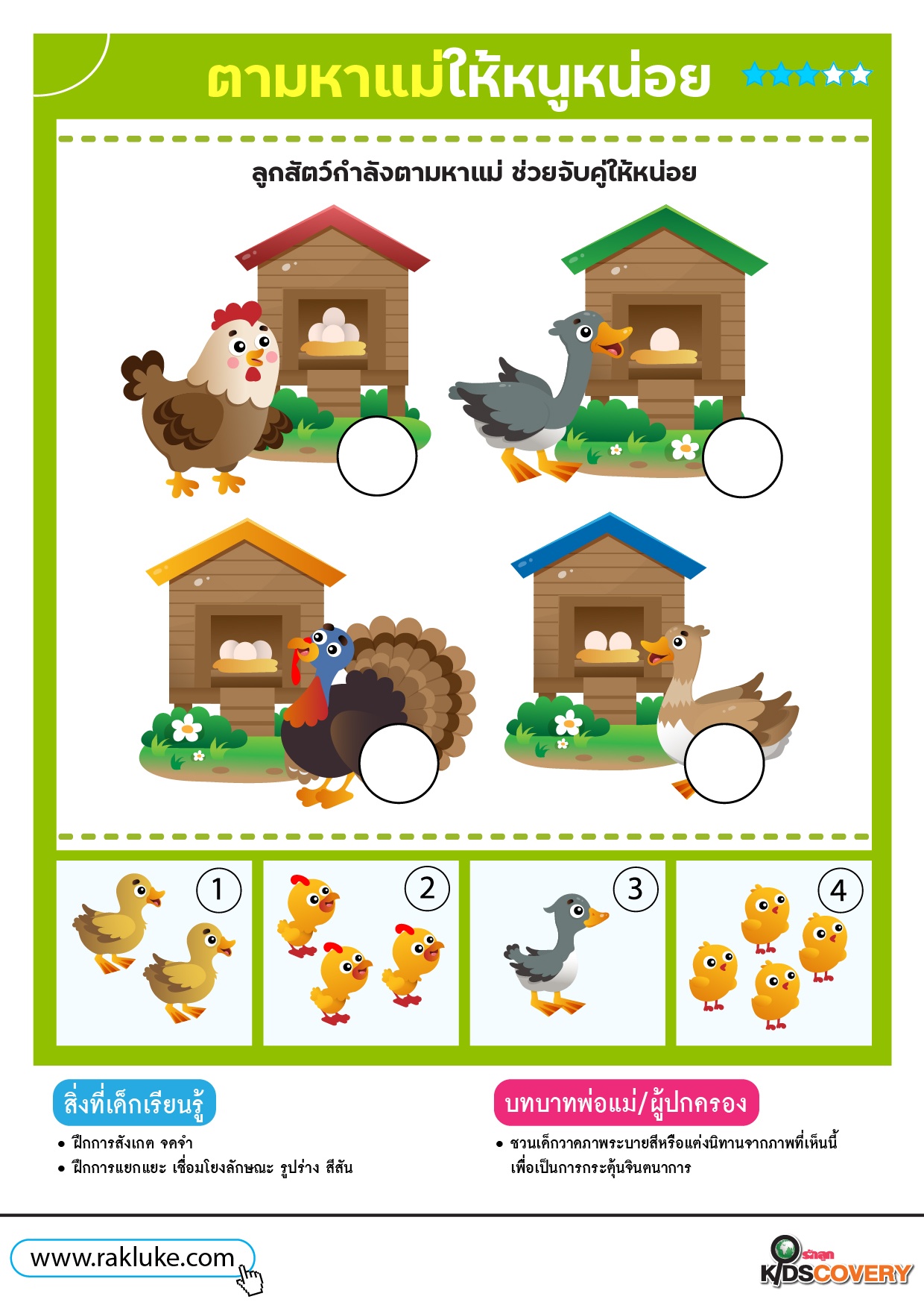 เกมจับคู่ภาพ ตามหาแม่ให้หนูหน่อย - ดาวน์โหลดฟรี Learning Sheet
