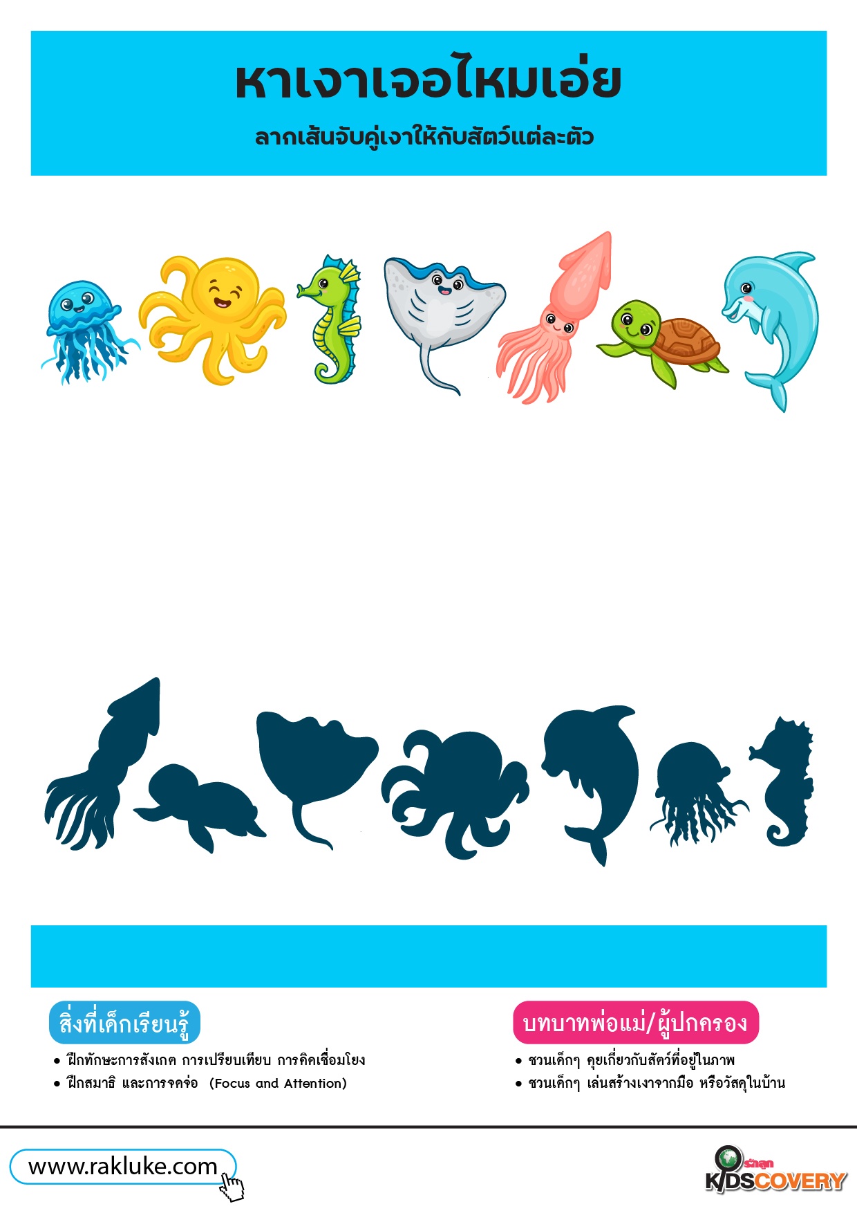 เกมจับคู่เงาสัตว์ทะเล หาเงาเจอกันไหมเอ่ย - ดาวน์โหลด Learning Sheet