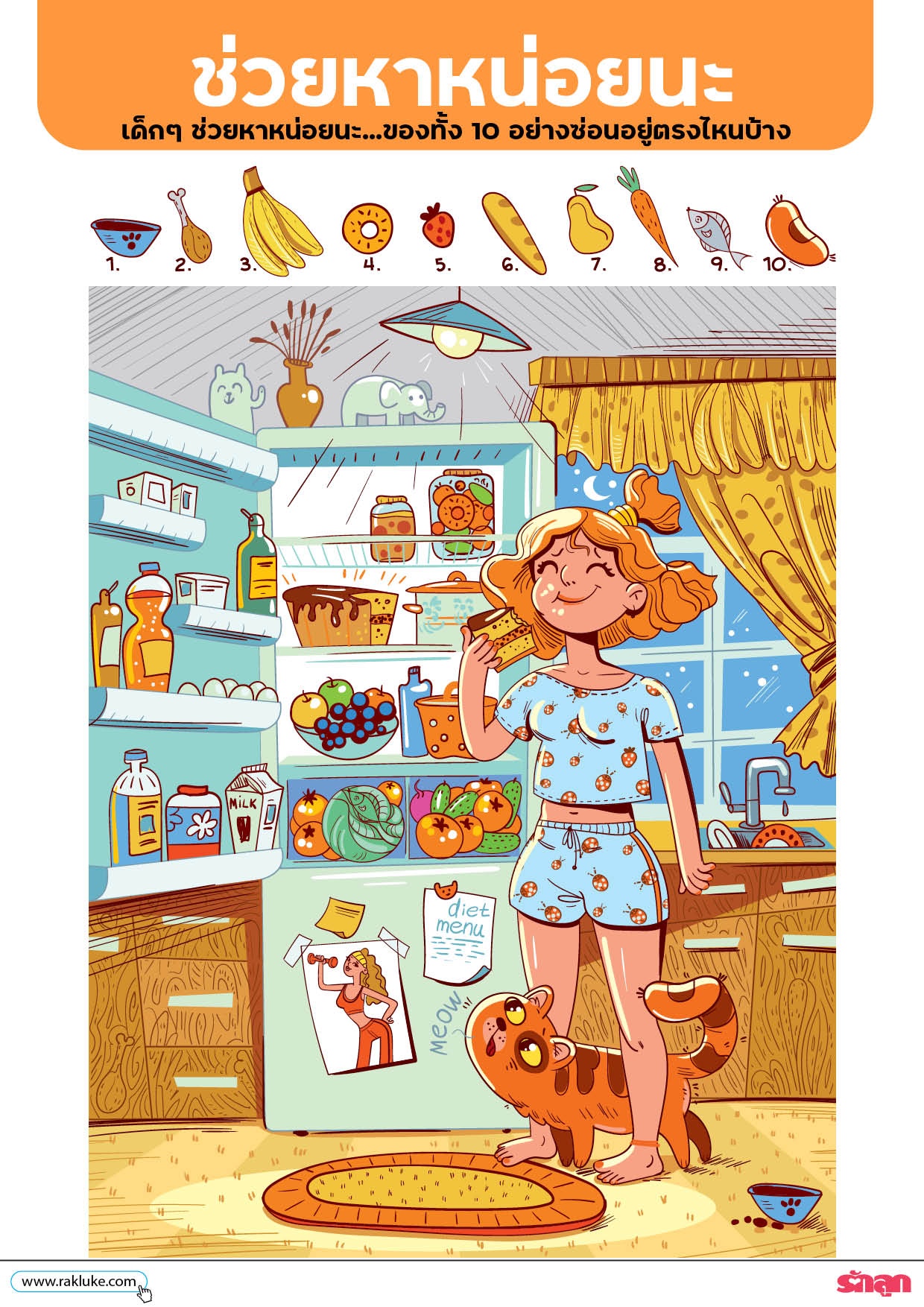 วิธีเล่น: เด็กๆ ช่วยหาหน่อยนะ...ของทั้ง 10 อย่างซ่อนอยู่ตรงไหนบ้าง
