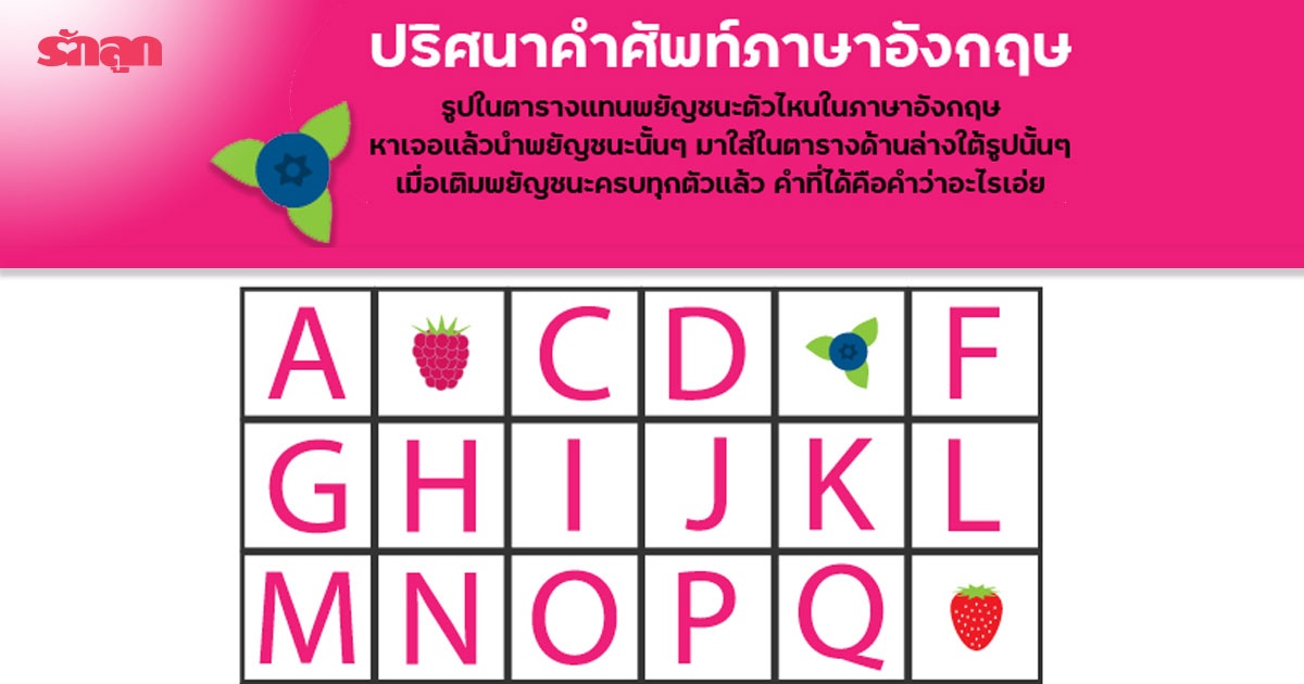 - เมื่อเติมพยัญชนะครบทุกตัวแล้ว คำที่ได้คือคำว่าอะไรเอ่ย