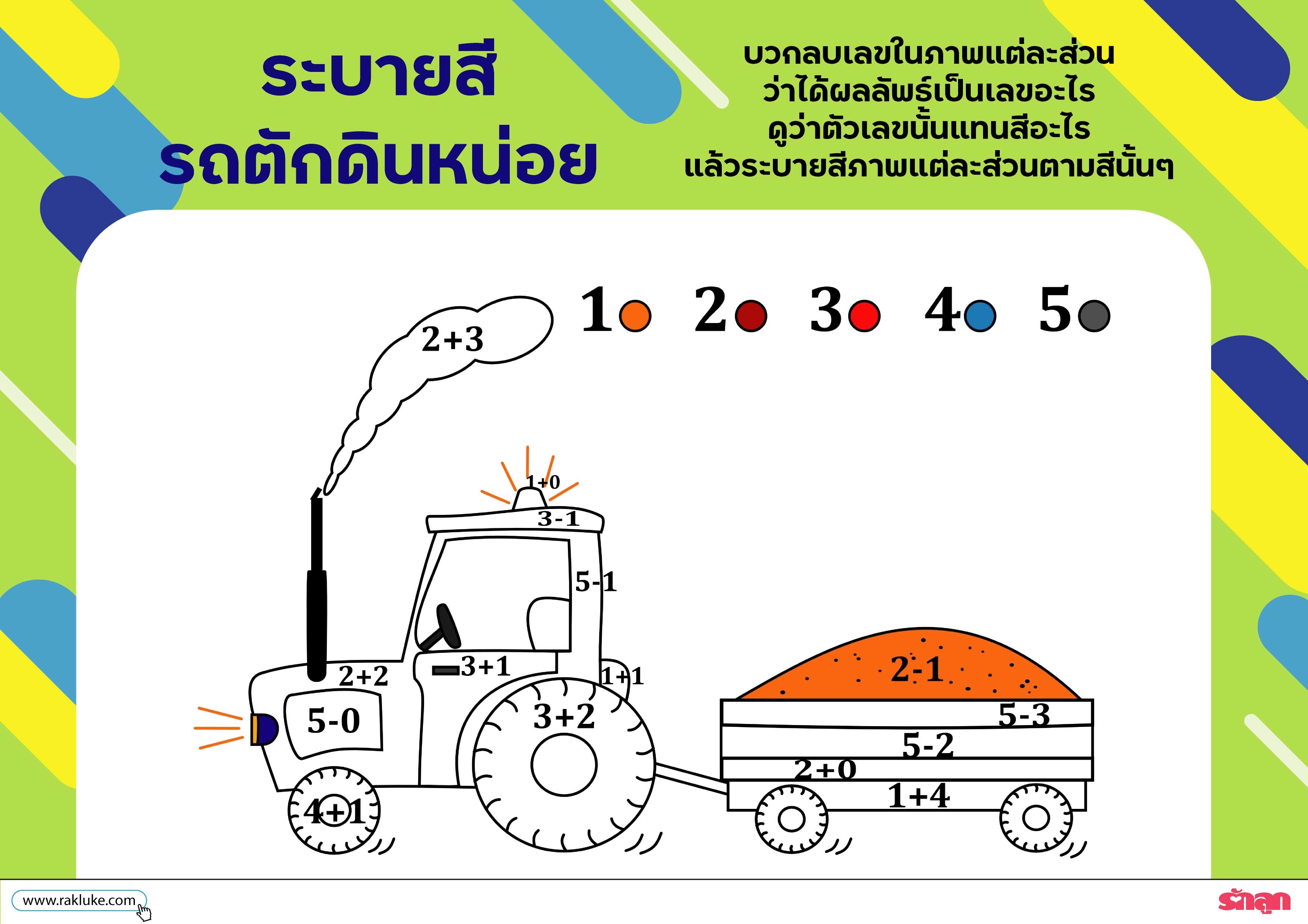 ดาวน์โหลด Learning Sheet l ระบายสีรถตักดินหน่อย