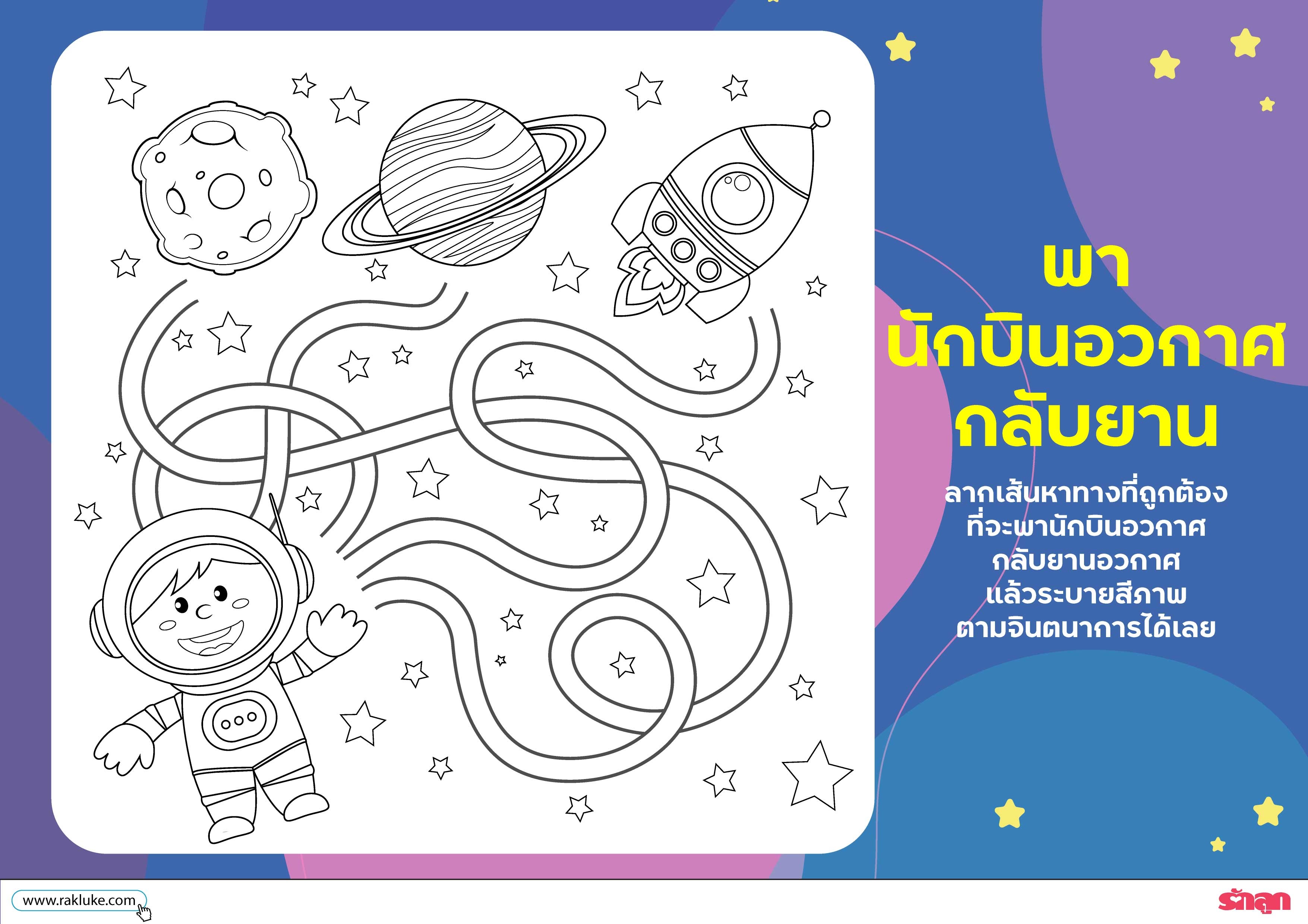 ชวนเด็กๆ สนุกกับการหาทางพานักบินอวกาศกลับยานอวกาศให้ถูก พร้อมสนุกกับศิลปะการระบายสีภาพ