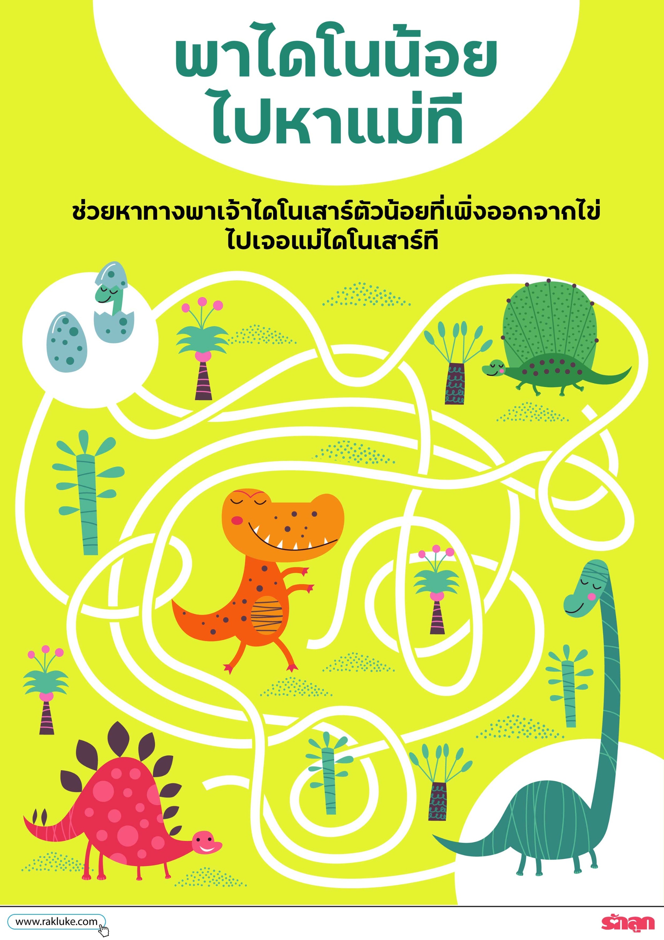 ชวนเด็กๆ ฝึกสมองสะกดรอยหาเส้นทางพาเจ้าไดโนเสาร์ตัวน้อยไปเจอแม่ไดโนเสาร์ที ดาวน์โหลดไปเล่นเลย
