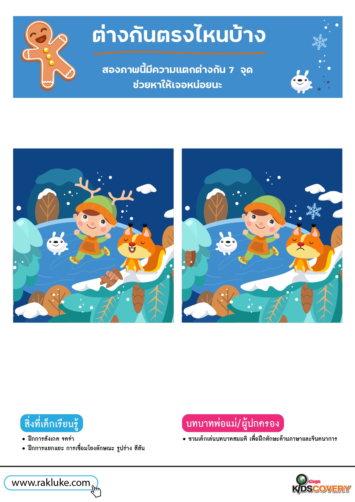 เกมจับผิดภาพ มี 7 จุดต่างกันตรงไหนบ้าง - ดาวน์โหลดฟรี Learning Sheet
