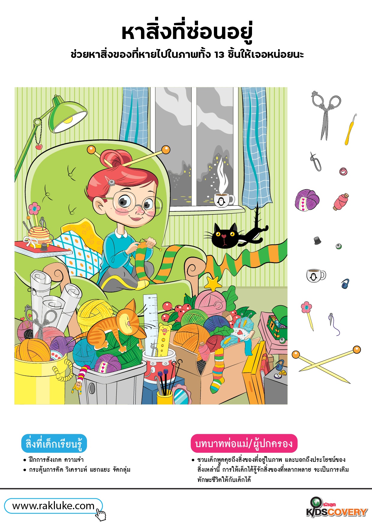 - หาสิ่งของที่ซ่อนอยู่ในภาพ จำนวน 13 ชิ้นให้เจอ