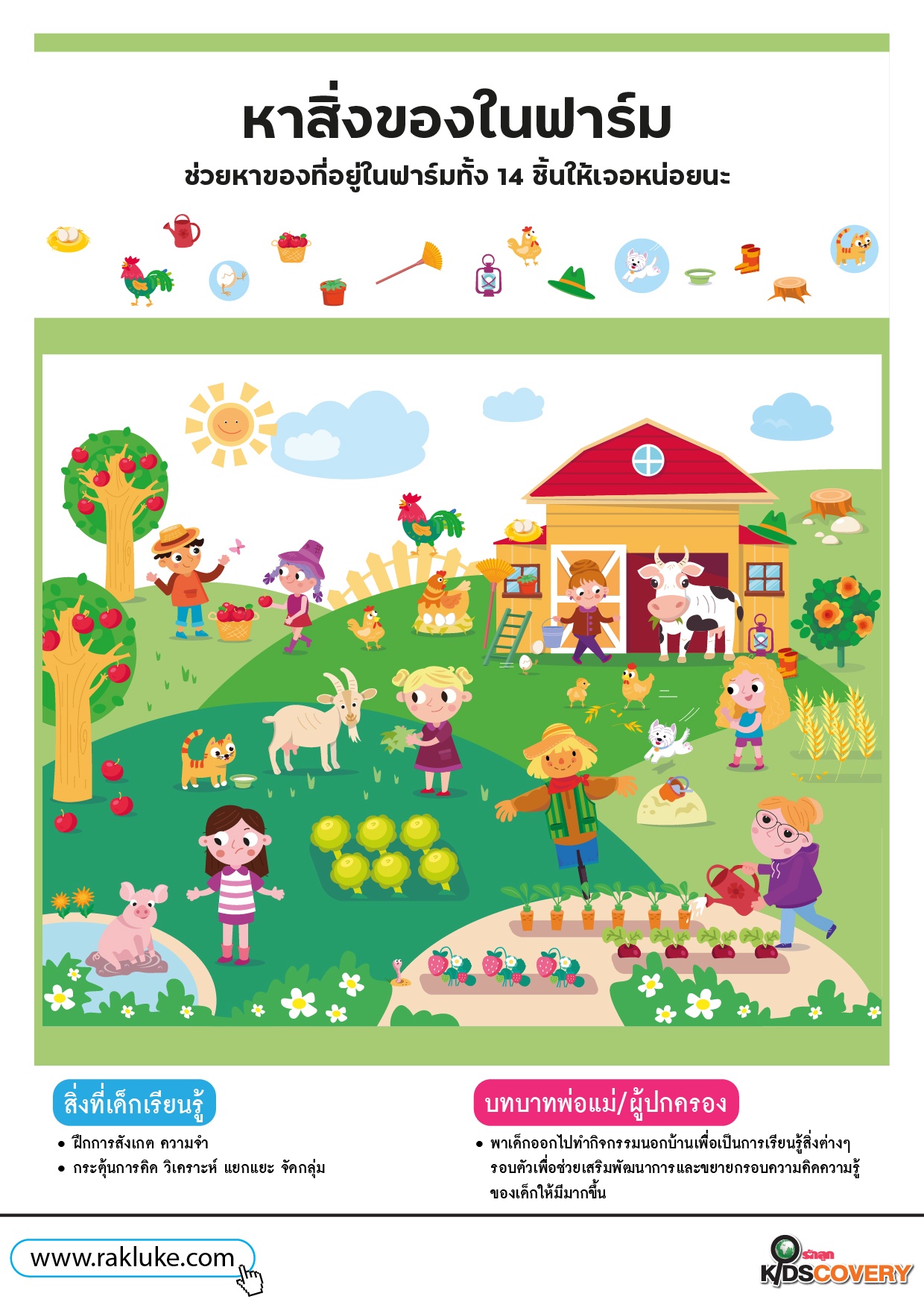 เกมหาสิ่งของ หาสิ่งของในฟาร์ม - ดาวน์โหลดฟรี Learning Sheet