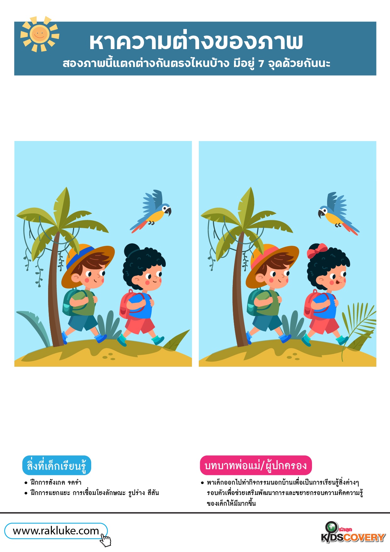 เกมจับผิดภาพ หาความต่างของภาพ 2 นักเดินทาง - ดาวน์โหลดฟรี Learning Sheet