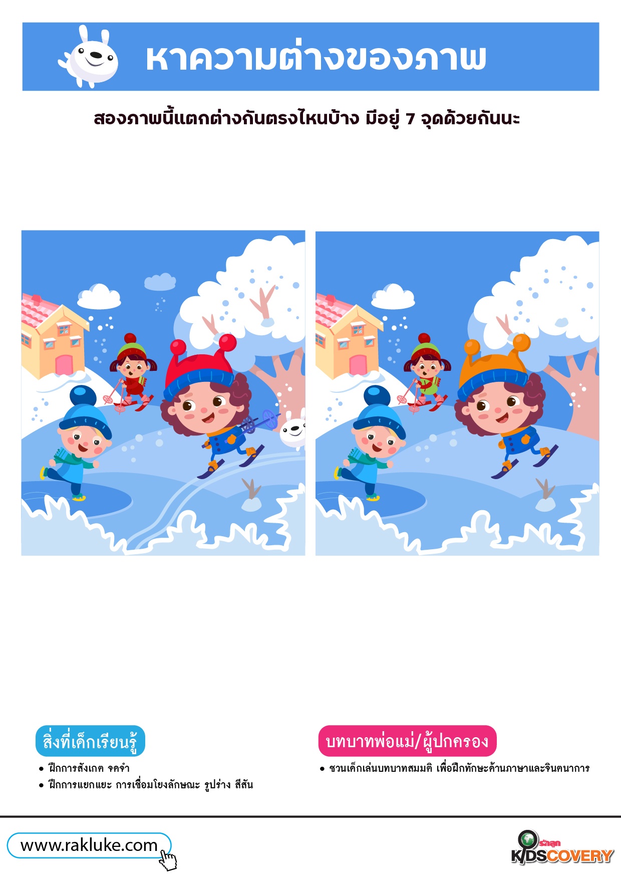 เกมจับผิดภาพ สองภาพนี้แตกต่างกันตรงไหน - ดาวน์โหลดฟรี Learning Sheet!