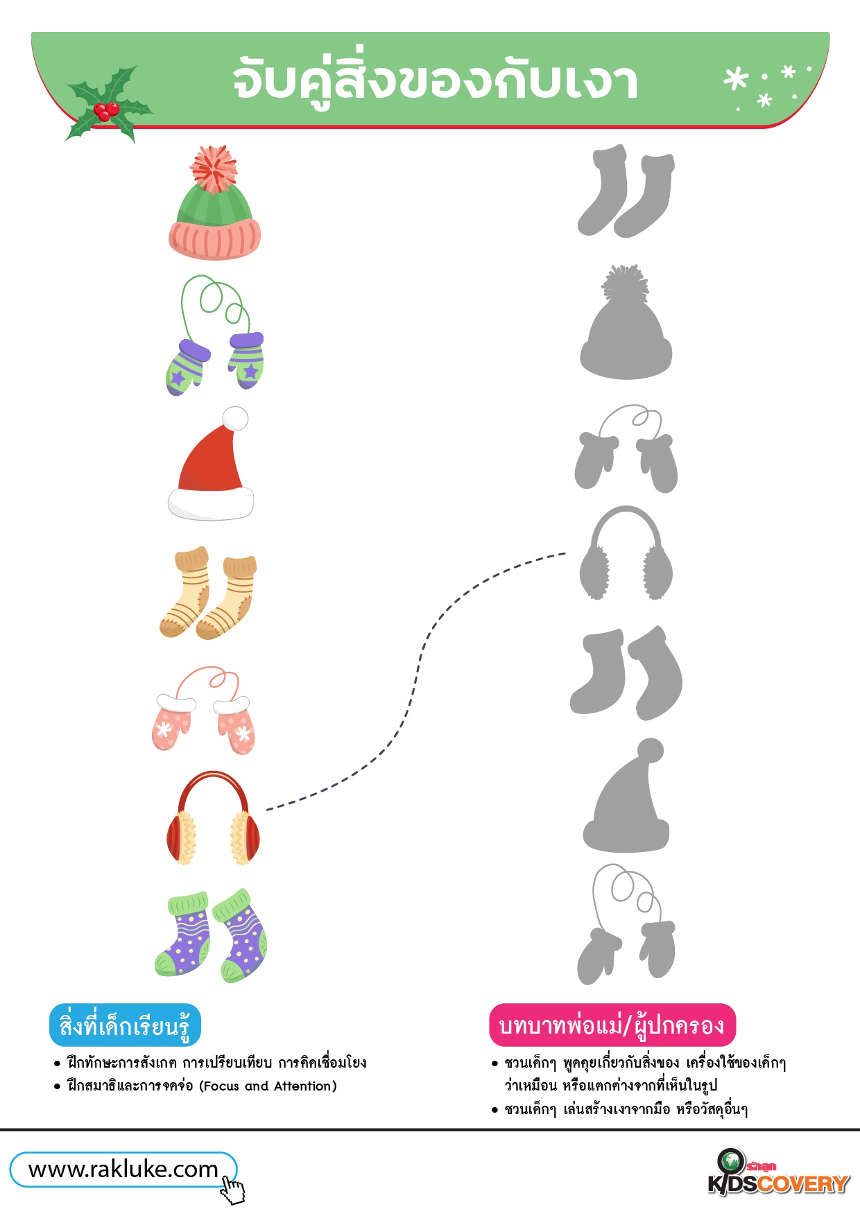 เกมจับคู่เงา รูปทรง ลากเส้น ชุดหน้าหนาว - ดาวน์โหลด Learning Sheet