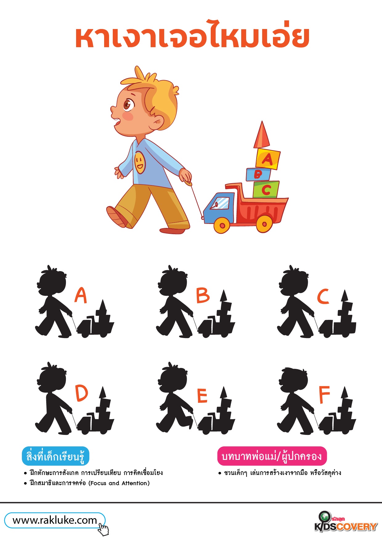 - สังเกตรูปด้านขวามือ แล้วลากเส้นจับคู่กับเงาให้ถูกต้อง