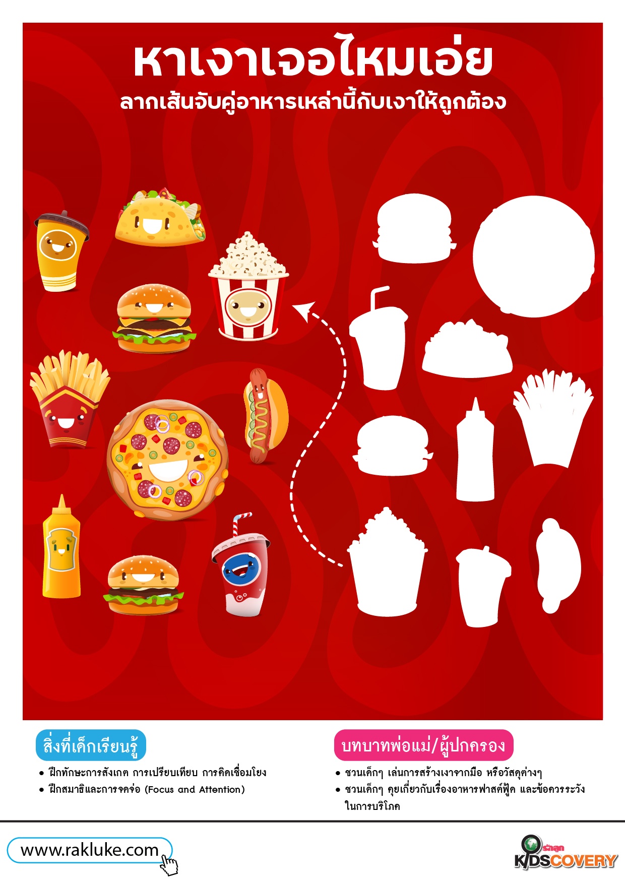 เกมจับคู่เงา รูปทรง ลากเส้นอาหารแสนอร่อย - ดาวน์โหลด Learning Sheet