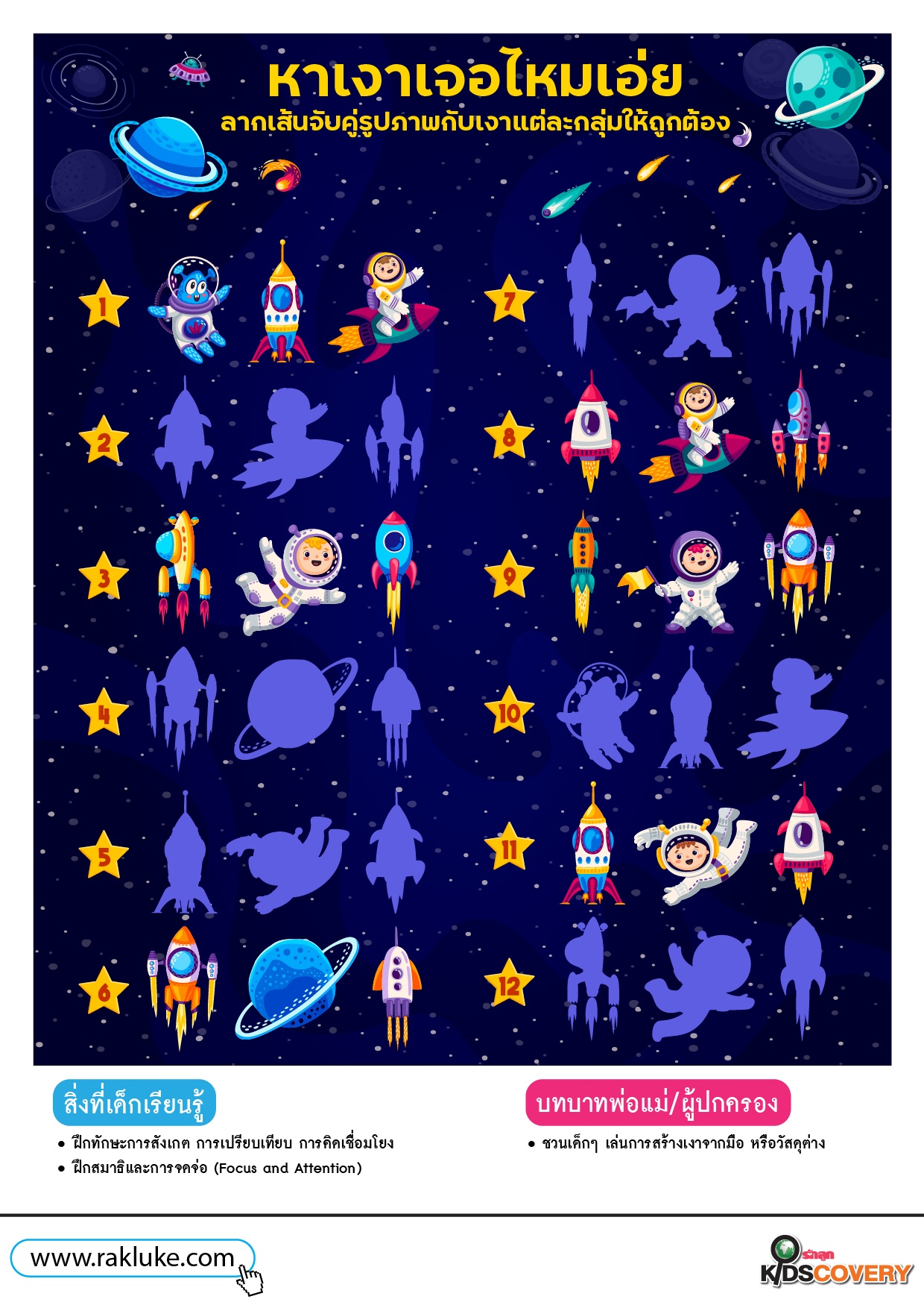 เกมจับคู่เงา รูปทรง ลากเส้นในอวกาศ - ดาวน์โหลด Learning Sheet
