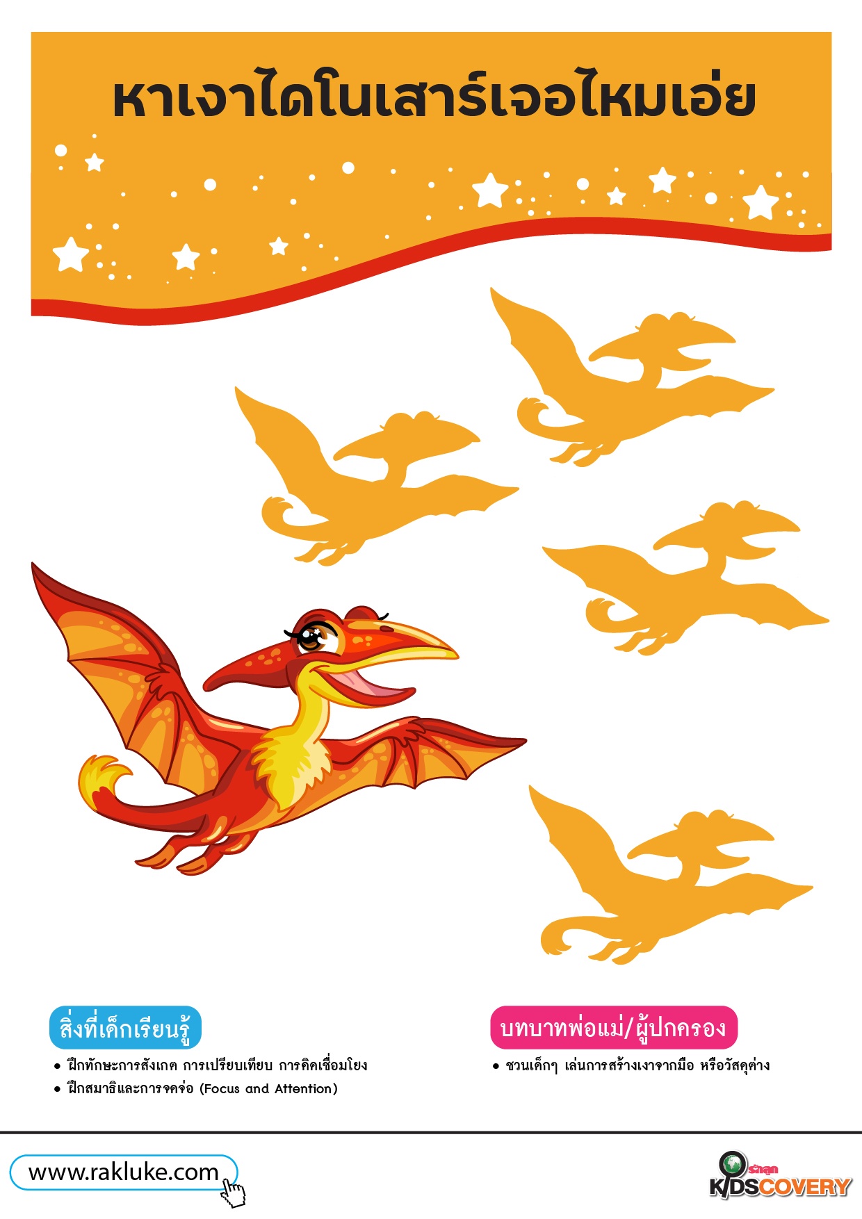 เงาไหนเป็นของไดโนเสาร์ - ดาวน์โหลด Learning Sheet