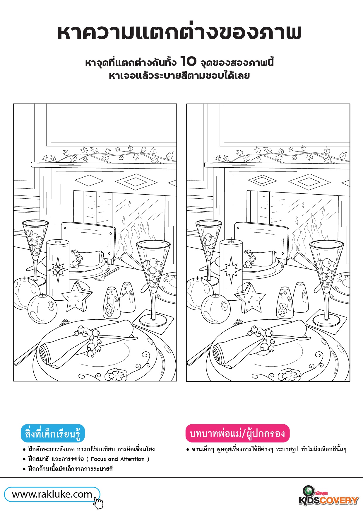 หาความต่างในภาพและระบายสีโต๊ะอาหาร - ดาวน์โหลด Learning Sheet