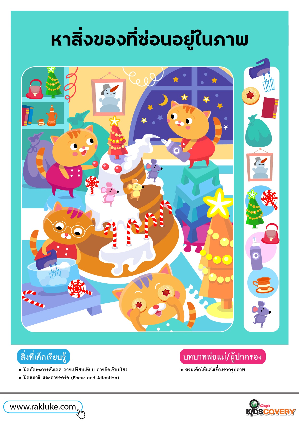 เกมหาของในภาพ ในวัดเกิดครอบครัวแมว - ดาวน์โหลด Learning Sheet