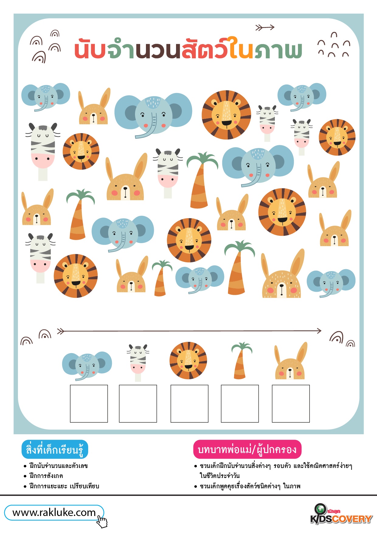 นับจำนวนสัตว์ในภาพ - ดาวน์โหลดฟรี Learning Sheet
