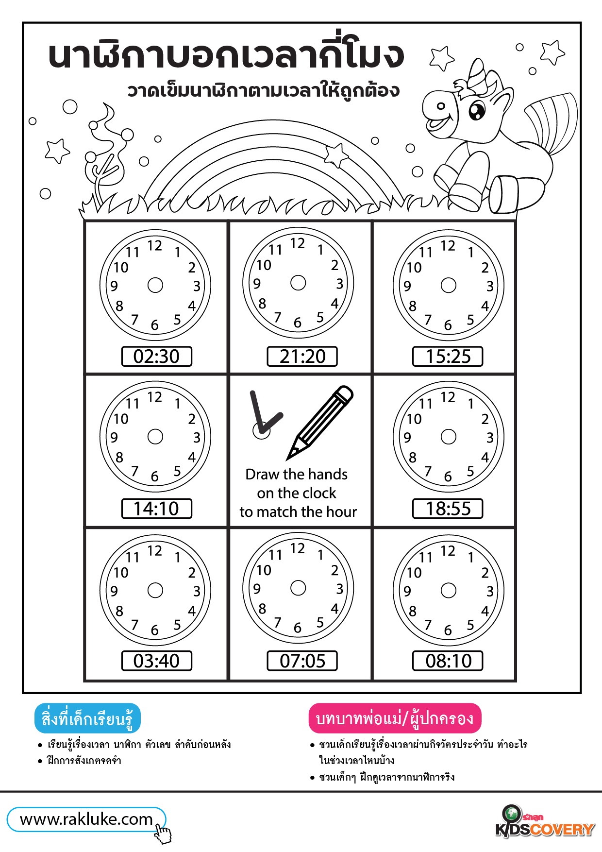 ตอนนี้กี่โมงนะ 3 - ดาวน์โหลดฟรี Learning Sheet