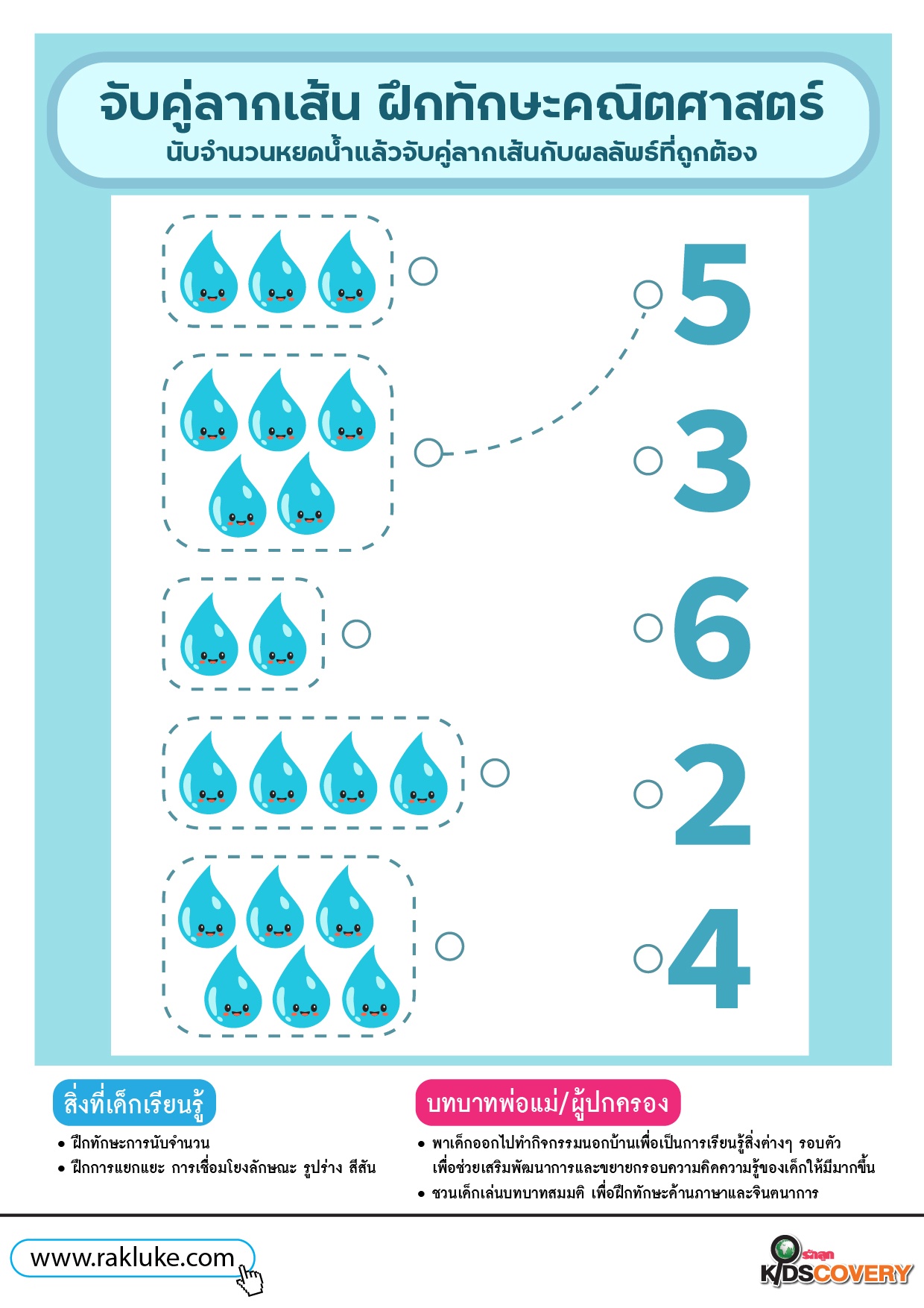 เกมจับคู่หยดน้ำ จับคู่ลากเส้น ฝึกทักษะคณิตศาสตร์ - ดาวน์โหลดฟรี Learning Sheet