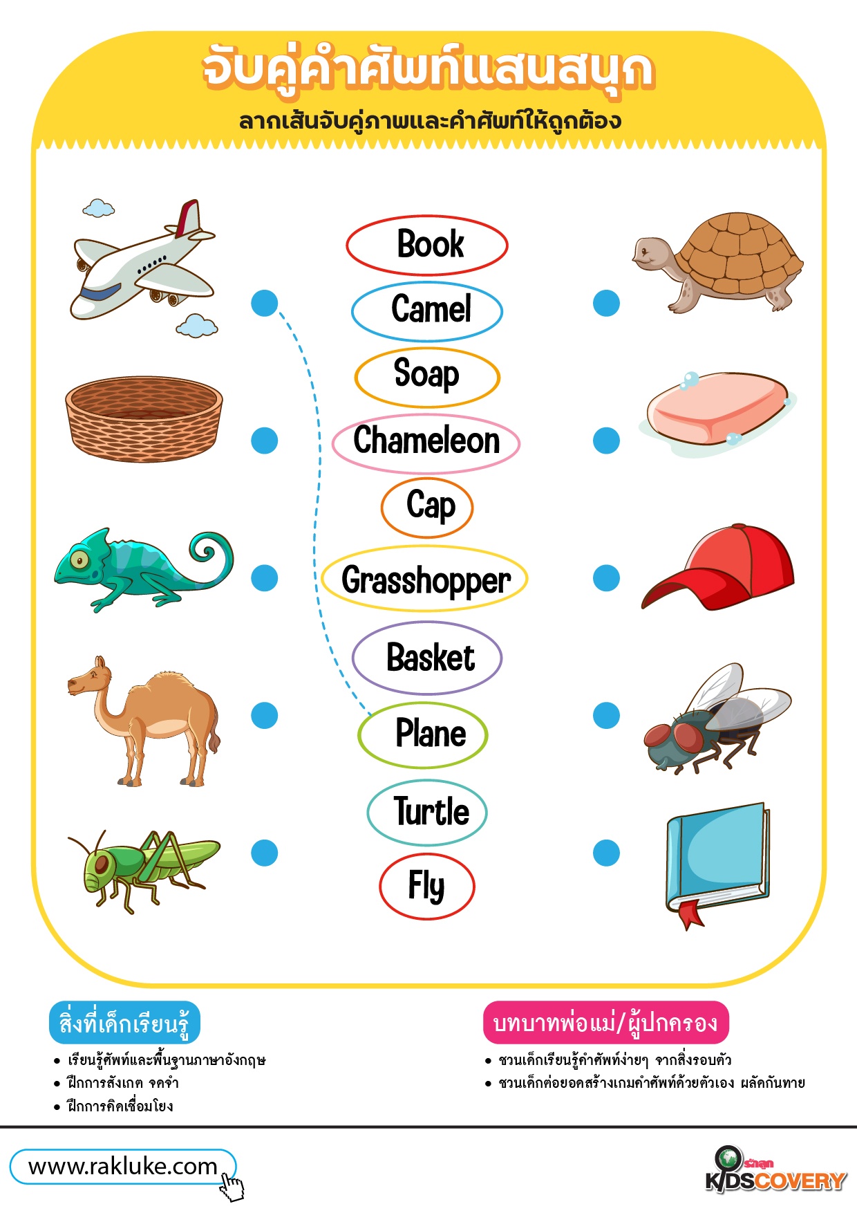 วิธีเล่น: ลากเส้นจับคู่ภาพและคำศัพท์ให้ถูกต้อง