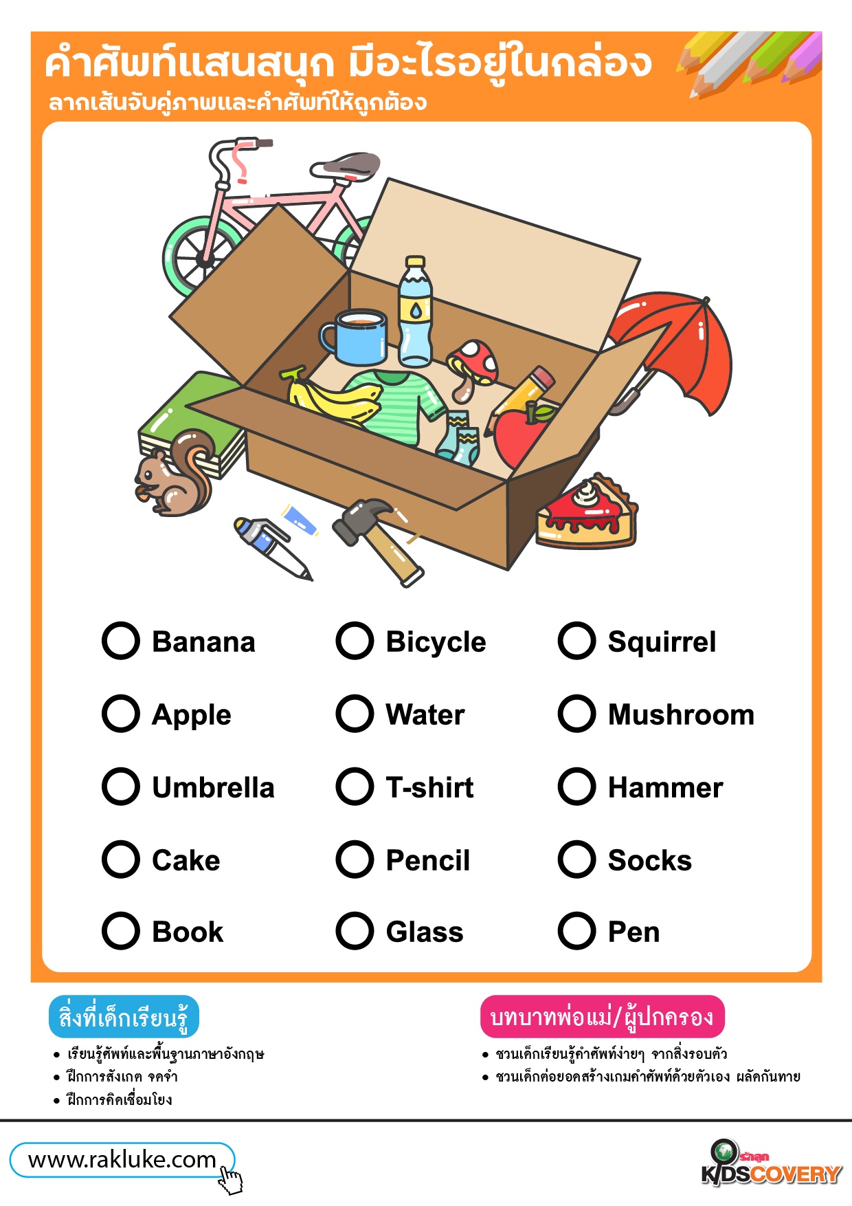คำศัพท์แสนสนุก มีอะไรอยู่ในกล่อง - ดาวน์โหลดฟรี Learning Sheet