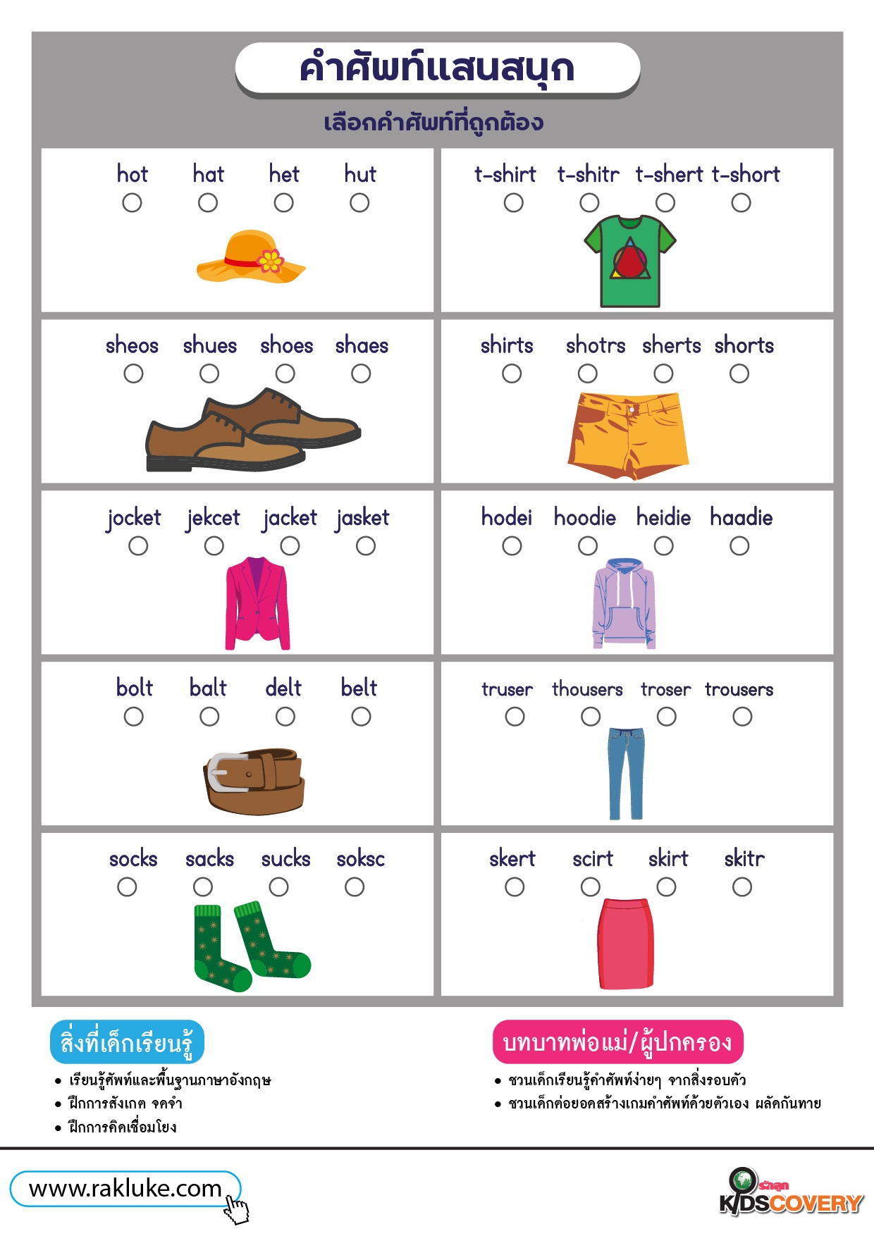 คำศัพท์แสนสนุก 7 - ดาวน์โหลดฟรี Learning Sheet
