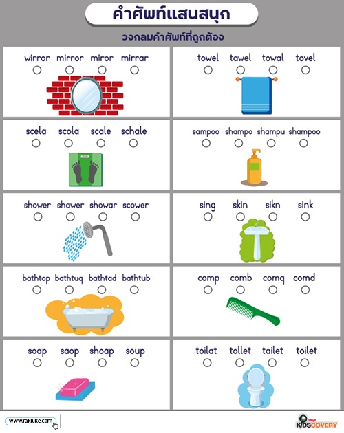 วิธีเล่น: ขีดเครื่องหมายถูกหรือวงกลมคำศัพท์ที่เขียนถูกต้องตรงกับภาพ