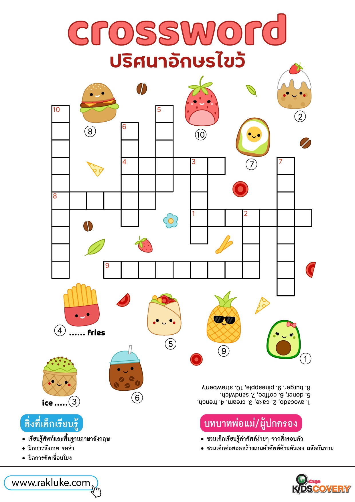 Crossword ปริศนาอักษรไขว้ 3 - ดาวน์โหลดฟรี Learning Sheet