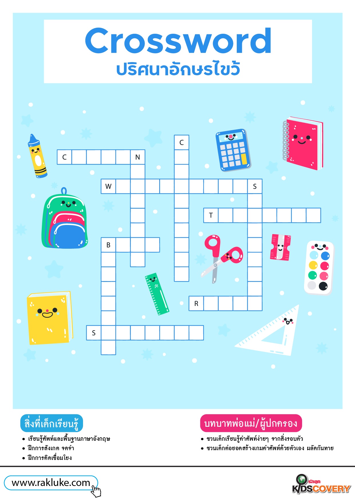 Crossword ปริศนาอักษรไขว้ 5 - ดาวน์โหลดฟรี Learning Sheet