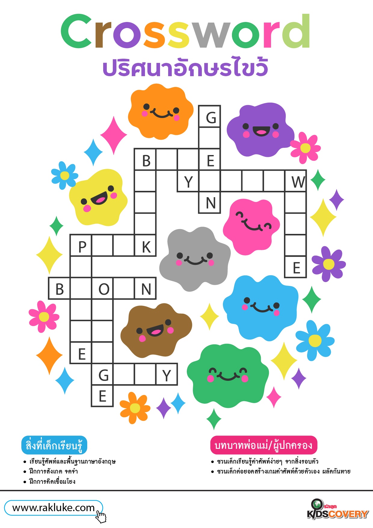 Crossword ปริศนาอักษรไขว้ 7 - ดาวน์โหลดฟรี Learning Sheet