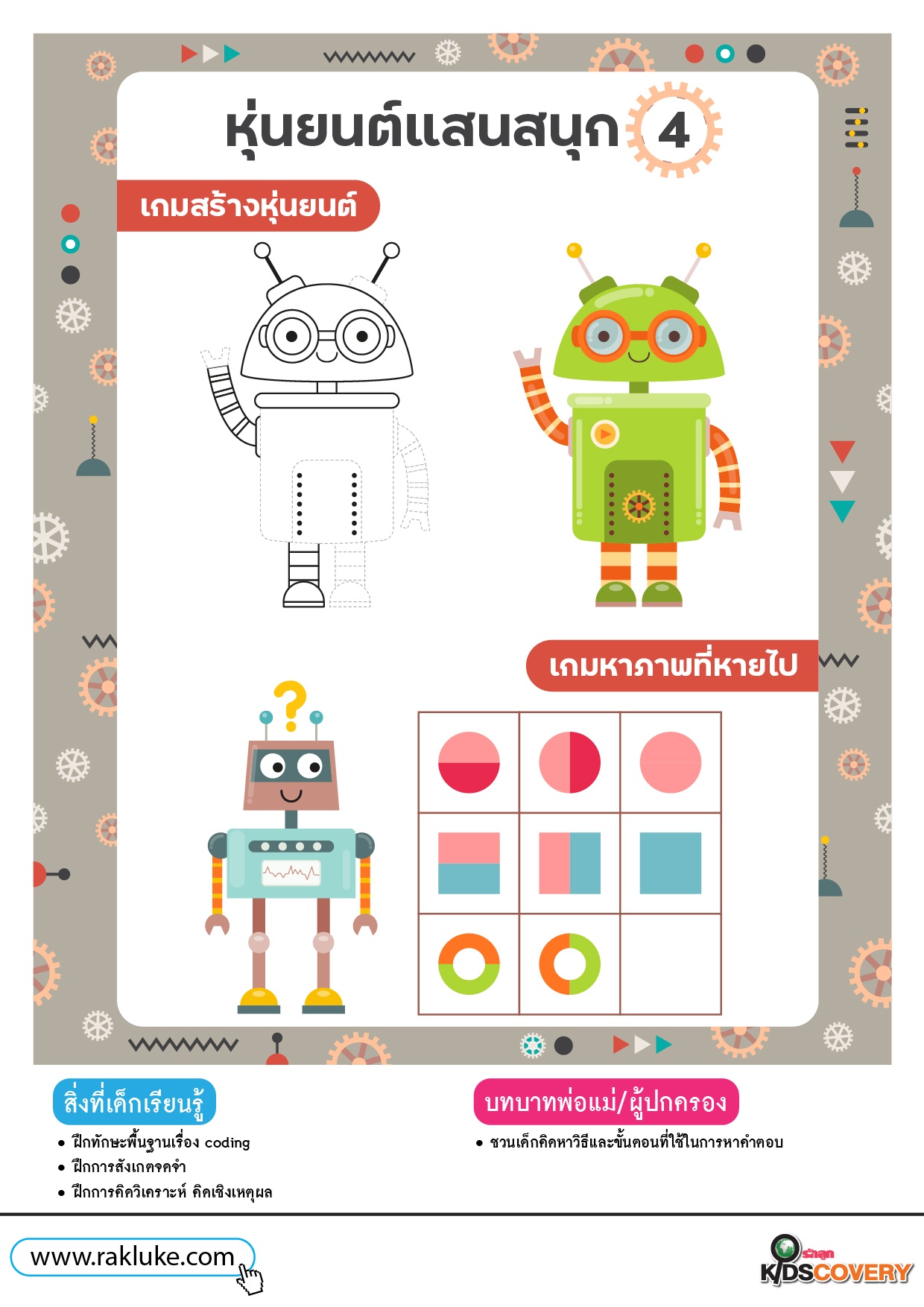 - เกมจับคู่เงา : ลากเส้นจับคู่หุ่นยนต์กับเงาที่ถูกต้อง