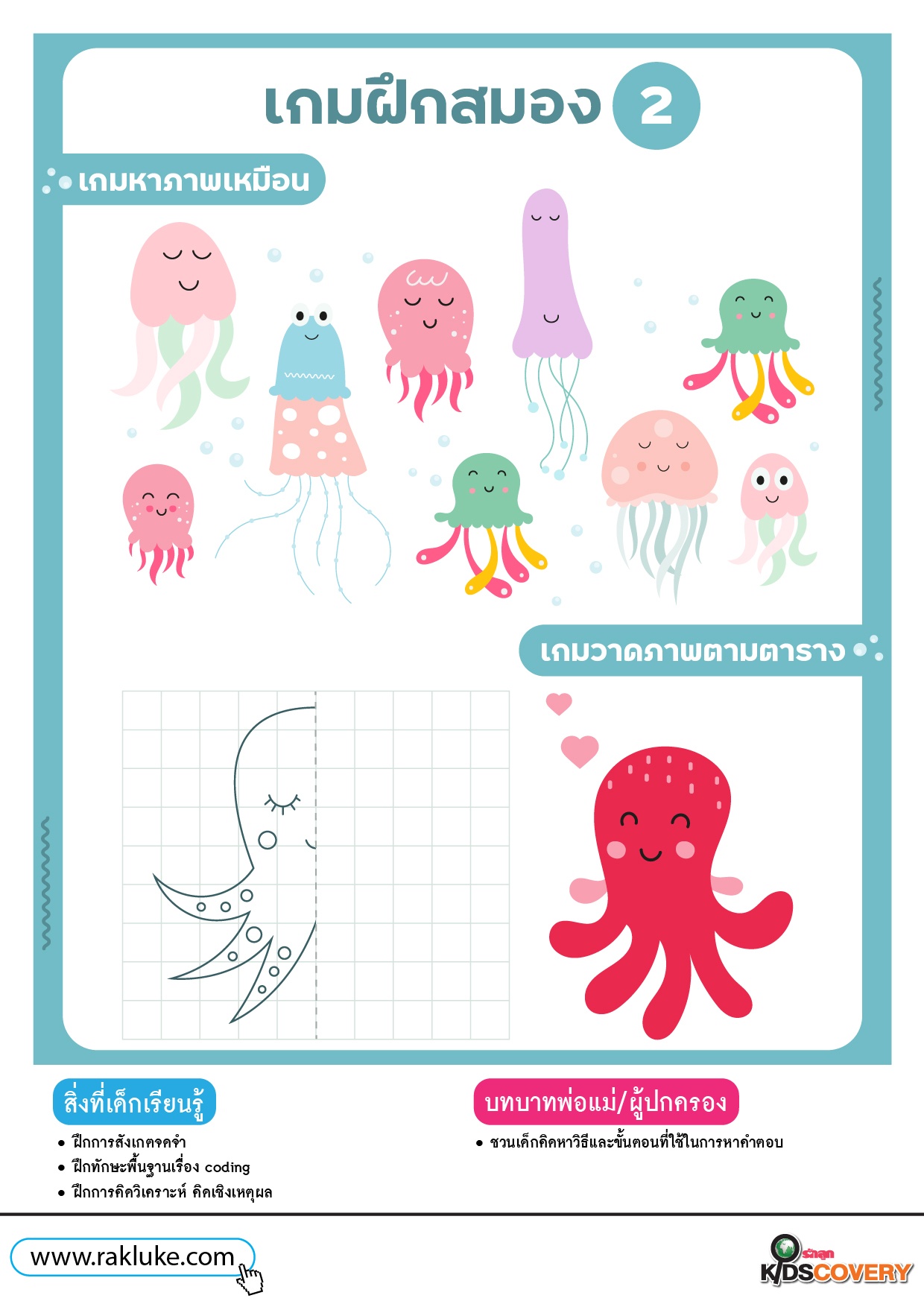 - เกมวาดภาพตามตาราง : เติมภาพแมงกระพรุนน้อยให้สมบูรณ์ตามแบบ