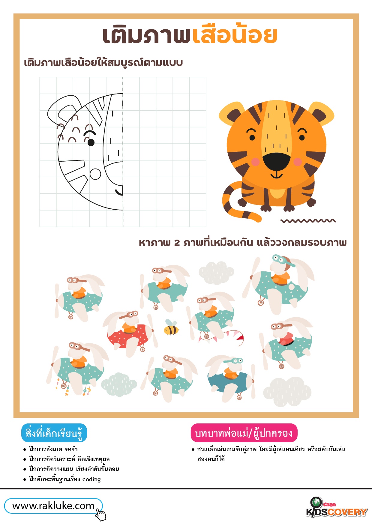 - เกมที่ 1 : เติมภาพเสือน้อยให้สมบูรณ์ตามแบบ
