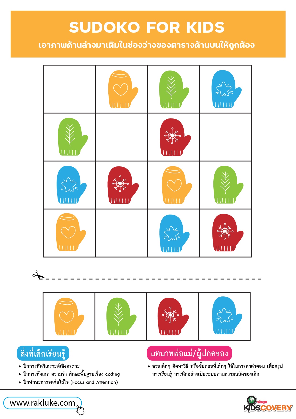 เกม Coding ซูโดกุถุงมือหลากสี - ดาวน์โหลด Learning Sheet
