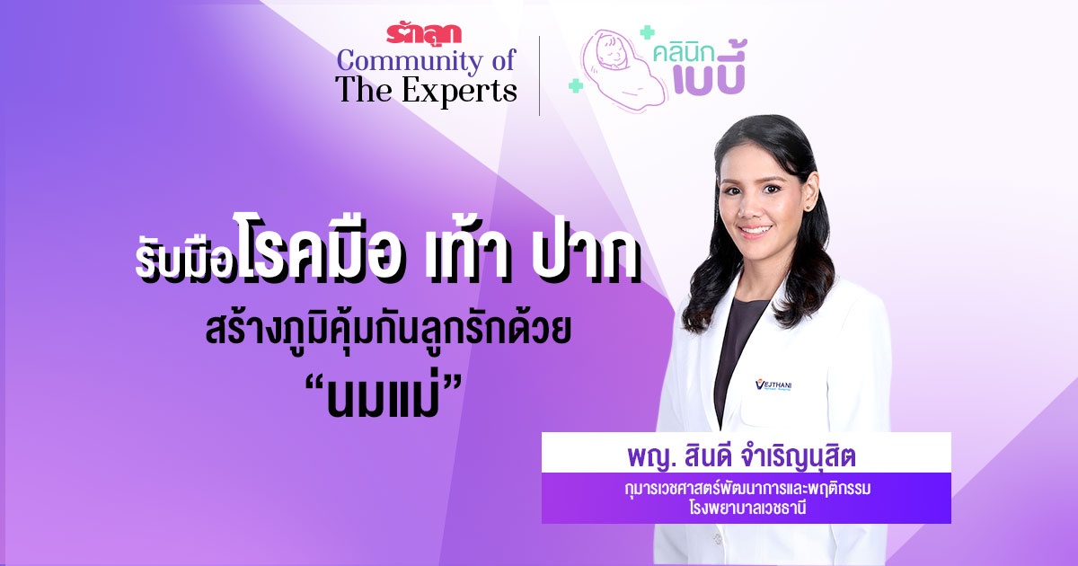 โรคมือ เท้า ปาก โรคติดต่อในเด็กที่มักจะระบาดในช่วงหน้าฝน คุณพ่อคุณแม่จะรับมือหรือเตรียมความพร้อมให้ลูกได้อย่างไร เพื่อลดความเสี่ยงในการติดเชื้อโรคมือ เท้า่ ปาก หรือเมื่อเป็นโรคมือ เท้า ปาก แล้วจะดูแลรักษาอย่างไรให้หายไว ไม่ลุกลามรุนแรง คุณหมอมีคำแนะนำที่เจ๋งมาก โดยเฉพาะการสร้างภูมิคุ้มกันให้ลูกด้วย "นมแม่" ค่ะ
