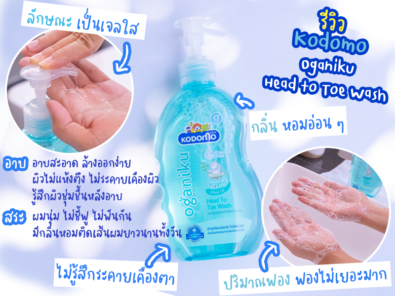 1. โคโดโม โอกานิคุ เฮด ทู โท วอช ออร์แกนิคโอลีฟออยล์ (Kodomo Oganiku Head to Toe Wash Organic Olive Oil) ขนาด 400 มล. ราคา 119 บาท พิกัดร้านค้า : https://bit.ly/3ysH5lI